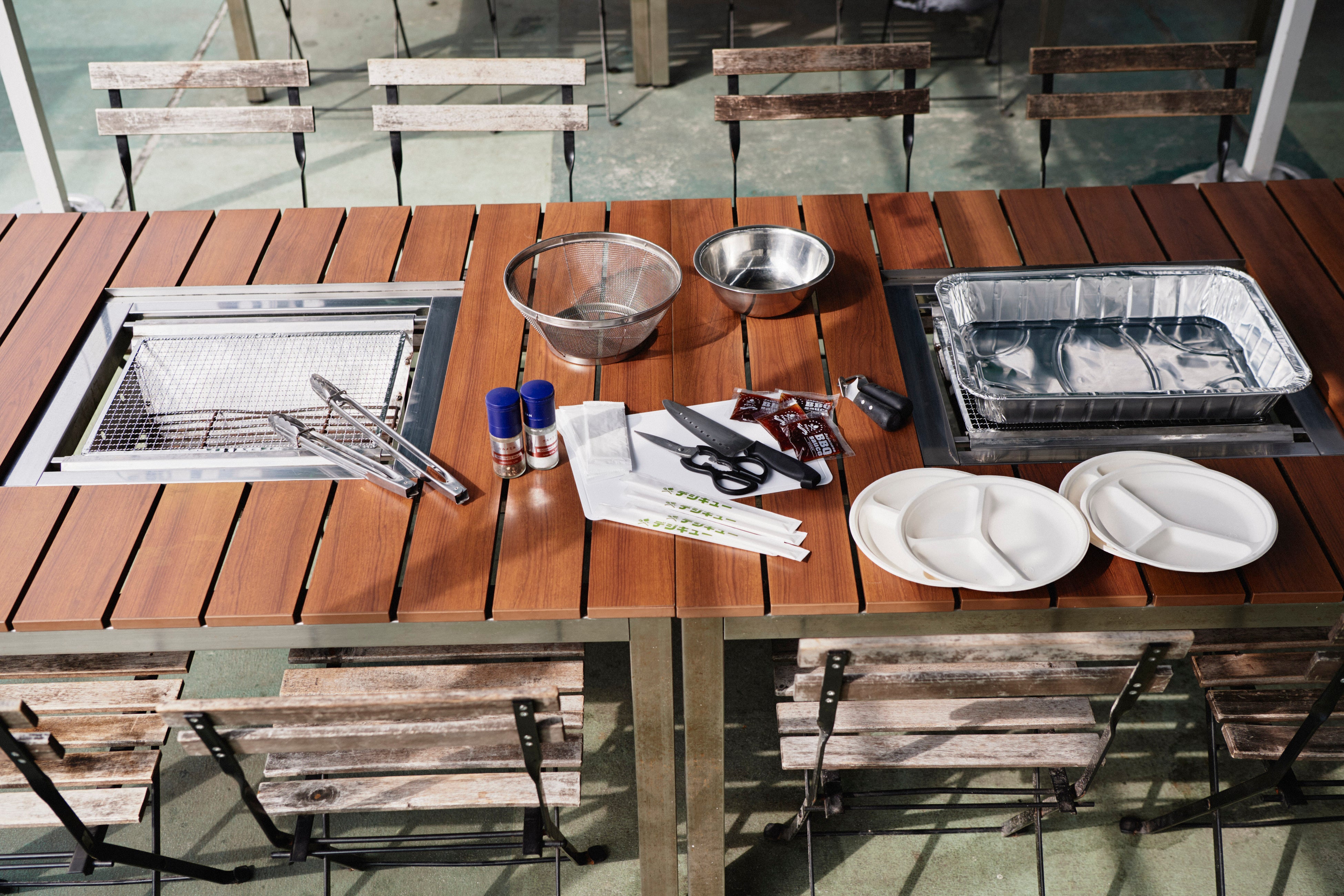 ※席代には紙皿、はし、調味料、トング、炭、網が含まれます。