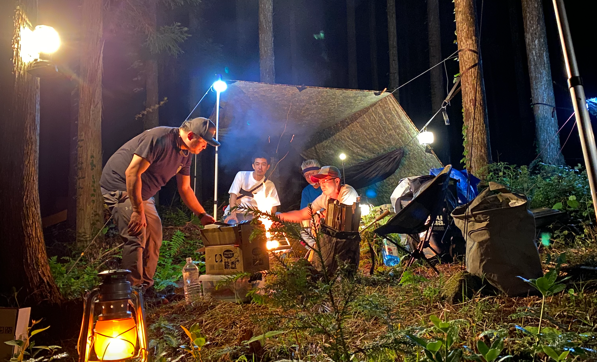 キャンプ場のように混み合うことのない静かな森林の中で、ものづくりや焚き火、食事など思い思いの時間を過ごしています。