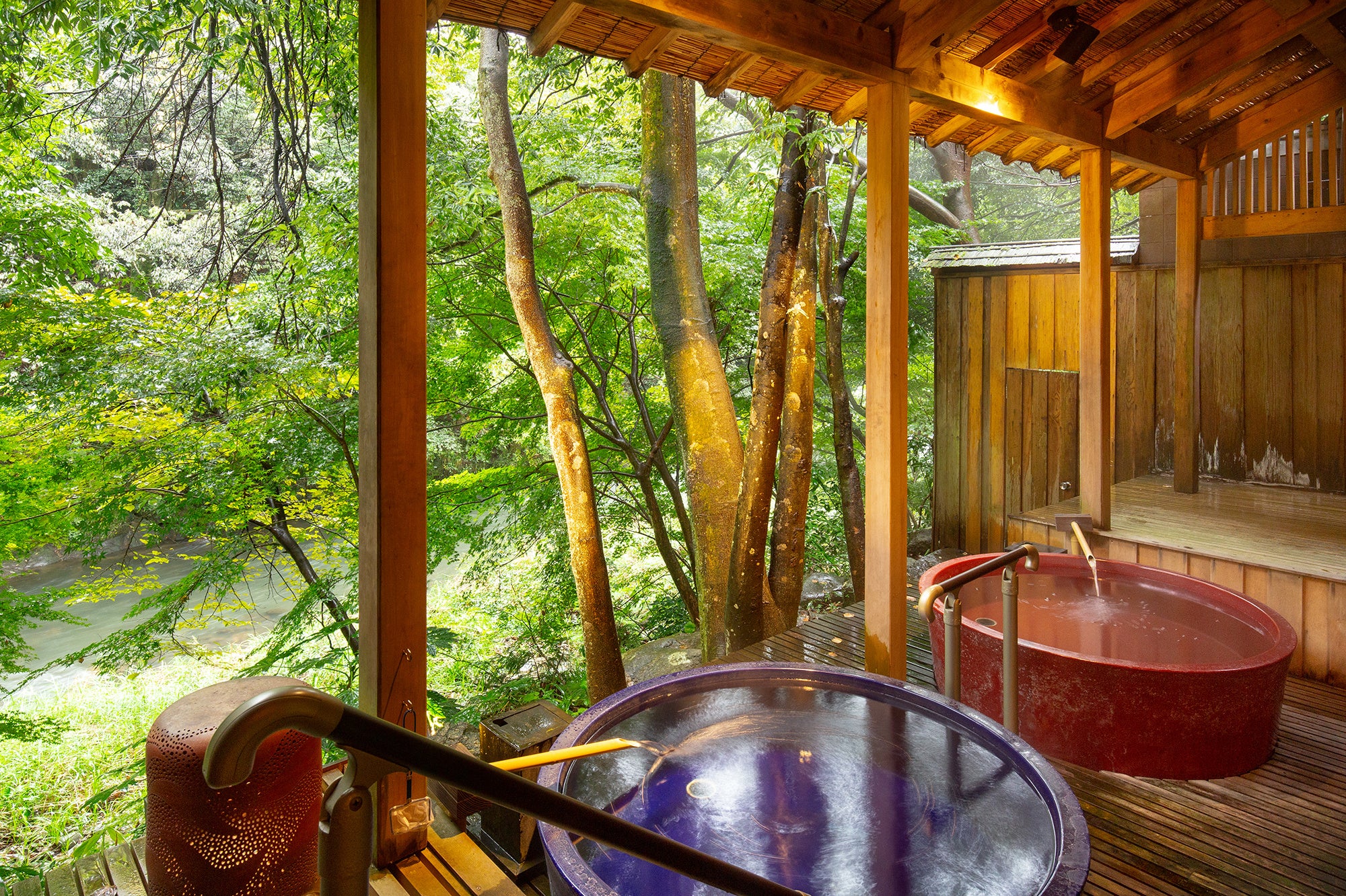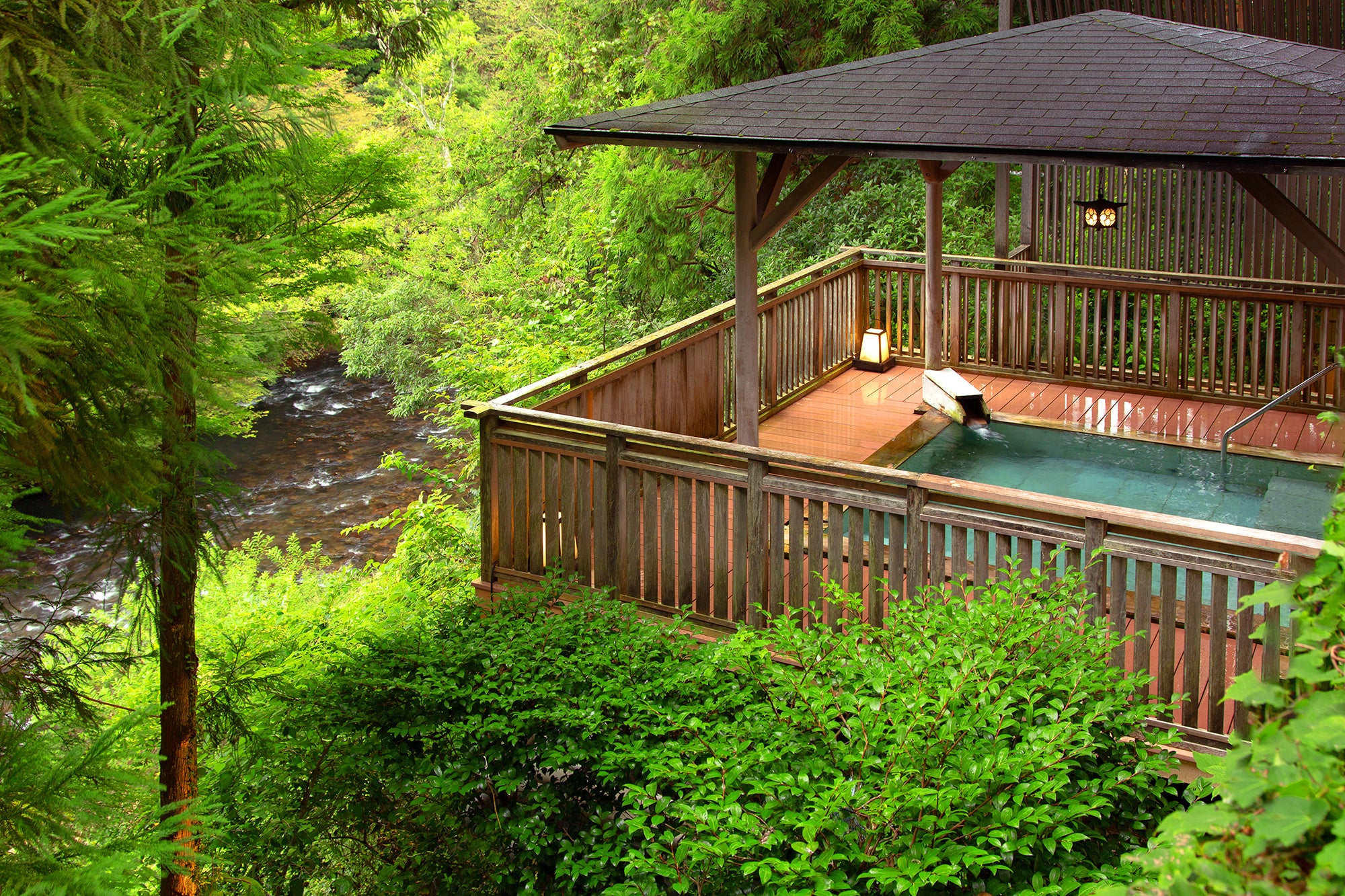 北陸随一の渓谷美と謳われる「鶴仙渓」沿いの加賀コンシャスな湯宿。新緑、紅葉、雪景色と四季の彩をお愉しみいただけます。ミシュランガイド北陸版2021にて三つ星を獲得。館内には、山中塗や九谷焼、加賀水引ランプシェードなどの伝統工芸品を配し、加賀の上質な文化を感じる設えです。