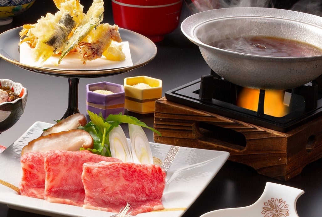 また、出荷頭数が極めて少なく、石川県外にほとんど出回らない幻のブランド牛とも云われ、きめが細かくとろけるような肉質が特長の「能登牛」は、すき鍋でご提供。