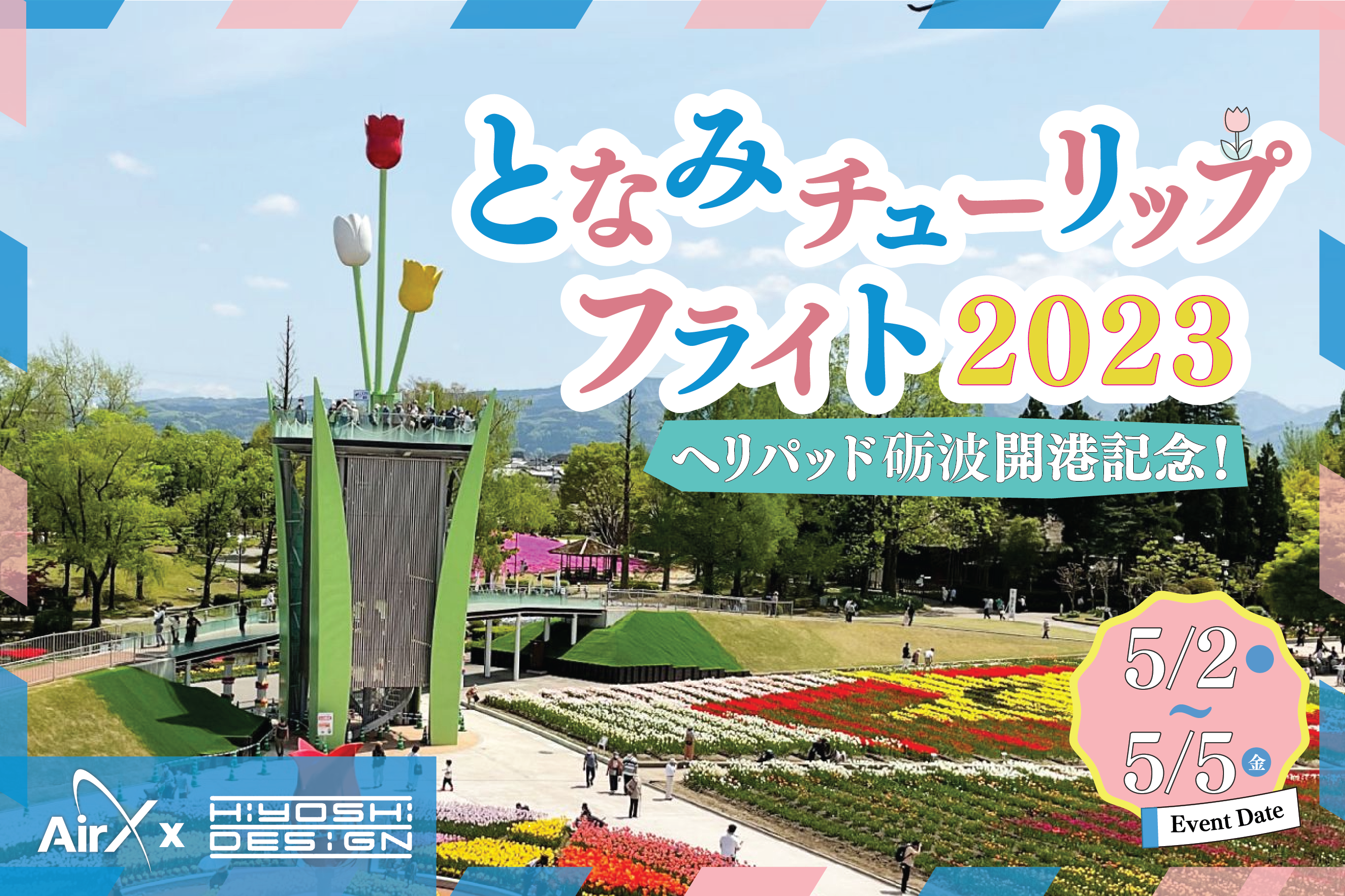 ヘリコプターやプライベートジェット、空飛ぶクルマなど、次世代のエアモビリティの供給源となるインフラを構築する株式会社AirX(本社:東京都千代田区、代表取締役:手塚 究、以下「AirX」)は、HIYOSHI・DESIGN(所在地:富山県砺波市、代表取締役:石村 忠美、以下「HIYOSHI・DESIGN」)と連携し、5月2日(火)〜5日(金・祝)の期間限定で、2023となみチューリップフェア会場をはじめ、砺波市街上空などを飛行するヘリコプター遊覧を開催いたします。