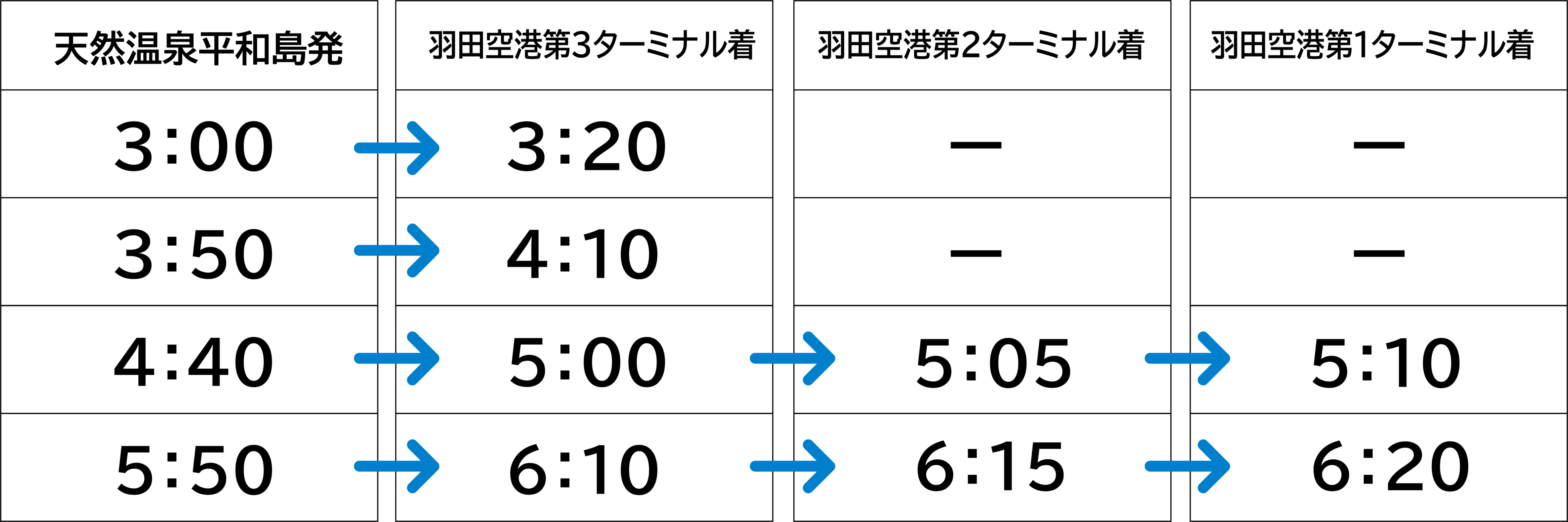 ■羽田空港第3ターミナル出発時刻表・お迎え場所