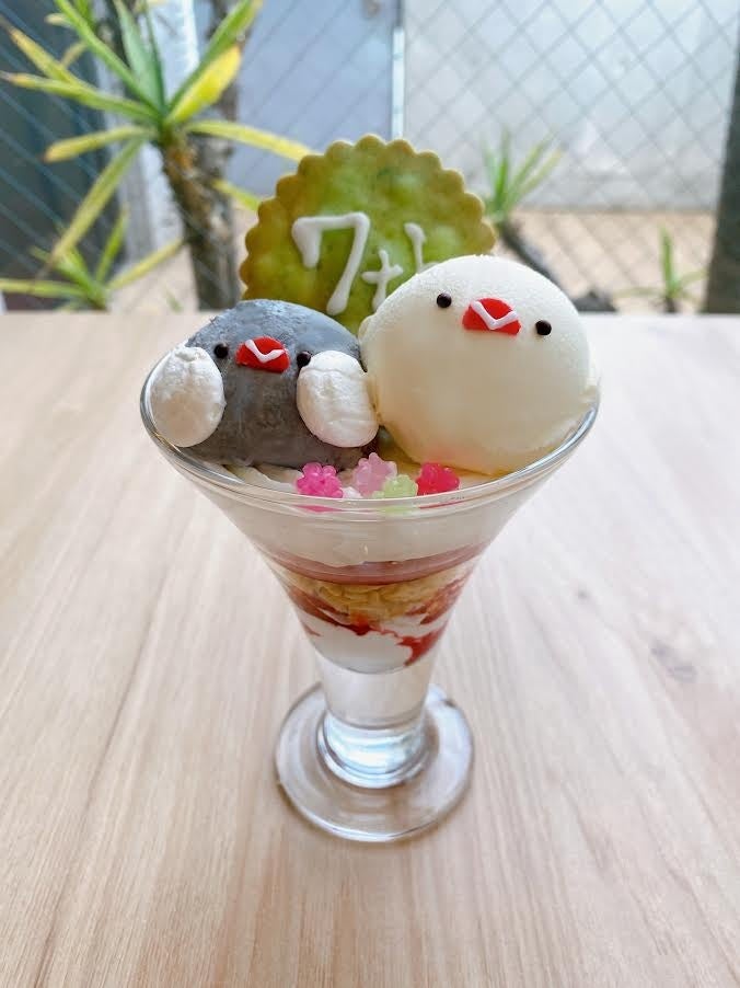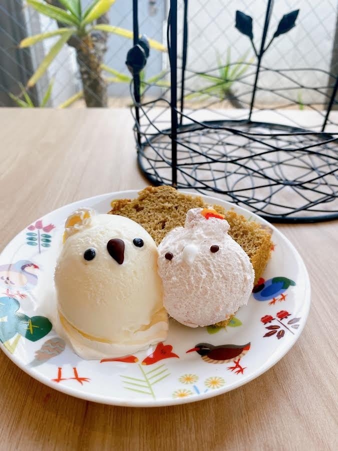 当店にに鳥さんと触れ合える、『もふもふ体験』というサービスがございまして、ふれあえる小鳥さん【もふスタッフ】をモチーフにしたスイーツやフードなど、インスタ映えする可愛らしい見た目と味にもこだわったメニューの販売を開始しています。