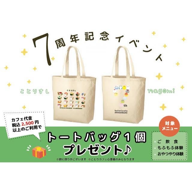 7周年を記念しまして、2,500円以上のカフェのご利用で限定トートバックをプレゼントいたします。