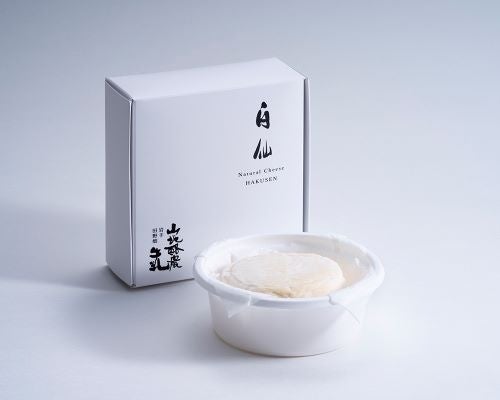 田野畑山地酪農牛乳の味を存分に楽しめる「白仙」。生乳の良さを生かすため、山地の生クリームを贅沢に使用。あらゆる塩との組み合わせを追求し、田野畑山地の牛乳でしか出せない美味しさをチーズの中に惜しみなく閉じ込めました。職人が毎日環境の変化を見極めながら今日も丁寧にひとつずつ想いを込めて製造しています。
