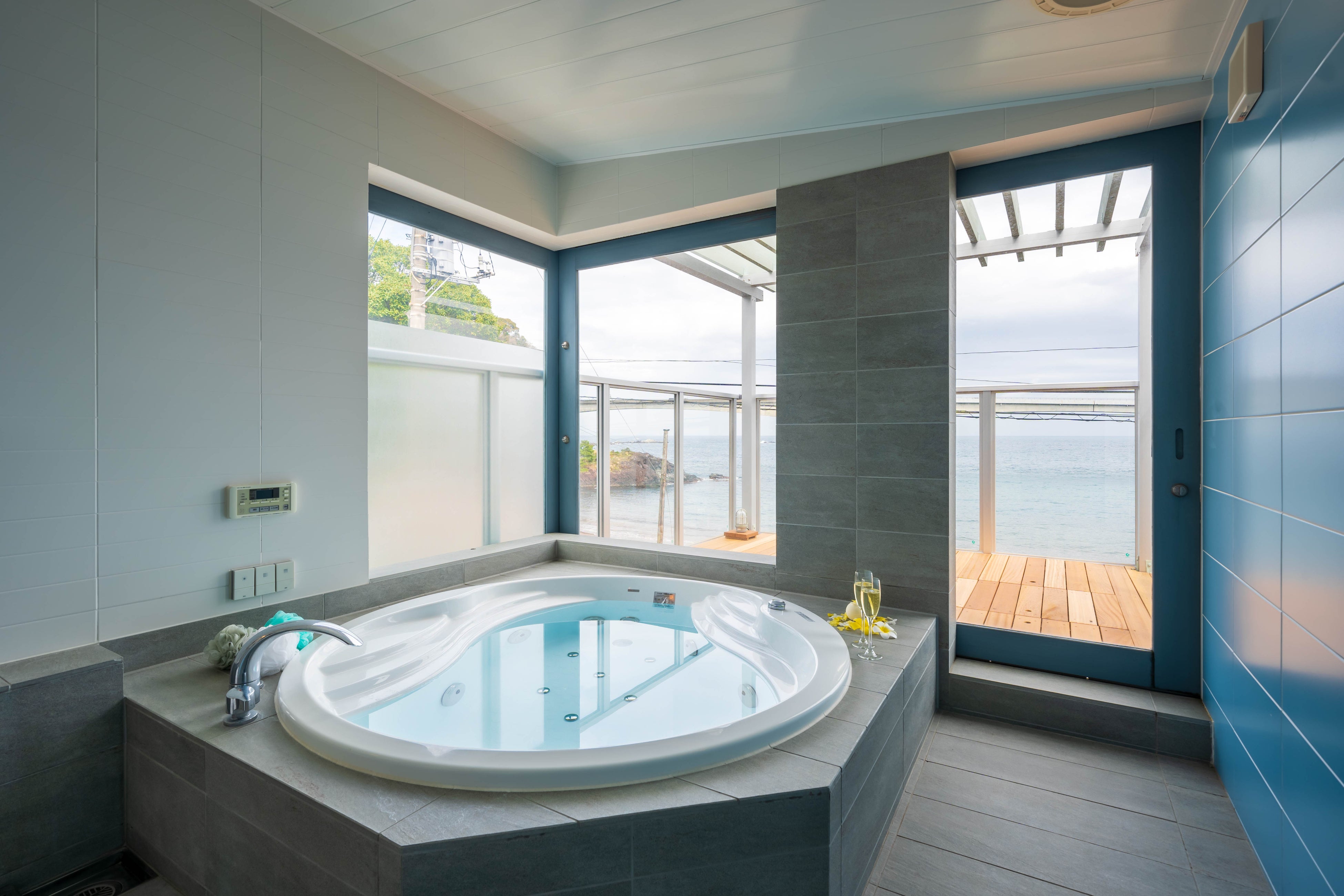 オーシャンビューのバスルームにはジェットバスとミストサウナをご用意。一棟貸別荘のプライべート空間なので親しい人間同士だけでサウナを楽しんだり、独り占めで自分好みの温度を設定するなど、最大限リラックスして“整う”サウナ体験がお楽しみいただけます。