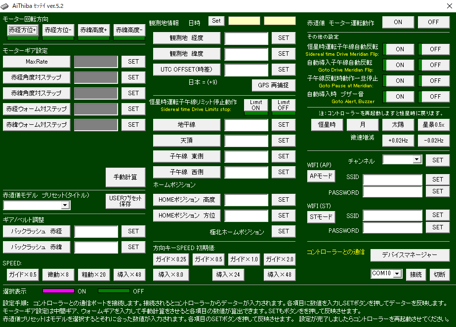導入速度:対恒星時200倍~1900倍(設定アプリで変更可能)