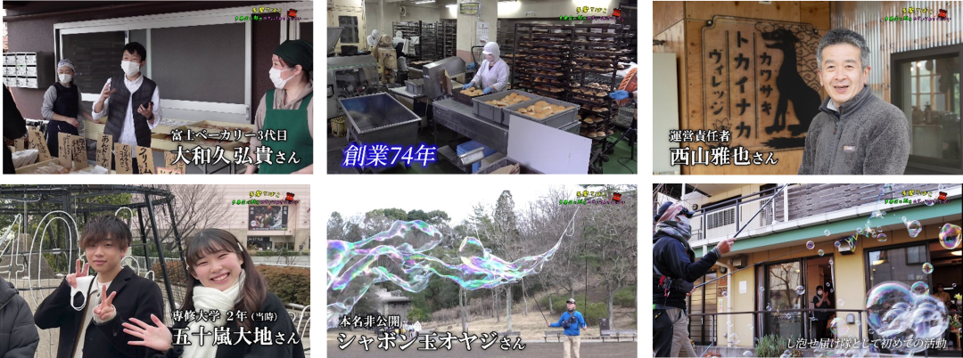 コロナ禍の経営危機から立ち上がり、地域で愛される“パン”をつくり続ける方、多摩区の自然の魅力を“イナカ体験”を通して発信する方、多摩区で長年続くイベントを支え、区民が楽しめる“音楽”を企画する方、“シャボン玉”で多くの人の心を癒す方の4名に焦点を当て、それぞれの活動における熱い想いや、多摩区を愛し、多摩区の発展に尽力する方々だからこそ知る多摩区の魅力をお伝えします。