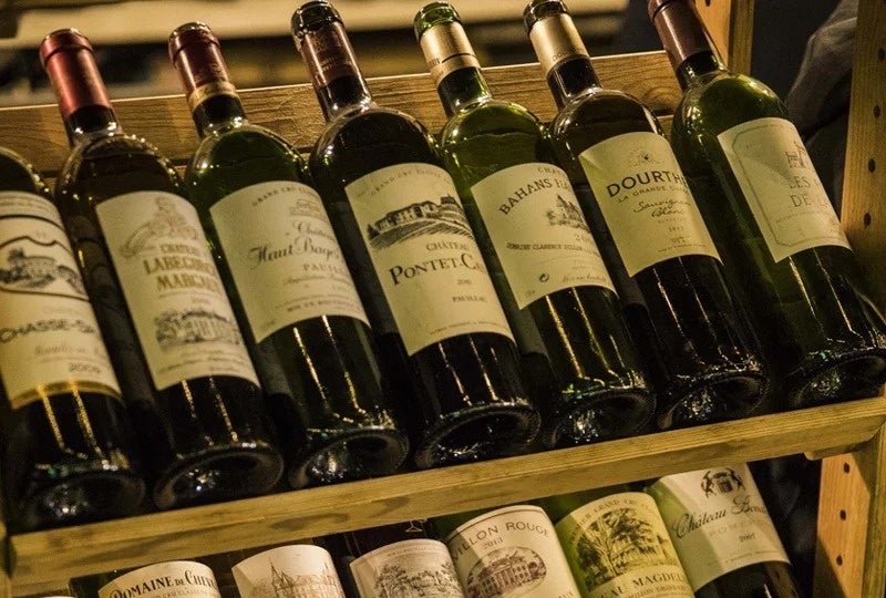 ワイン:100種類(ボルドー、ロワール、コート・デュ・ローヌ、ラングドック、プロヴァンス、ブルゴーニュ、シャンパーニュ、アルザスといった各産地の赤・白・ロゼ・オレンジ・スパークリング)