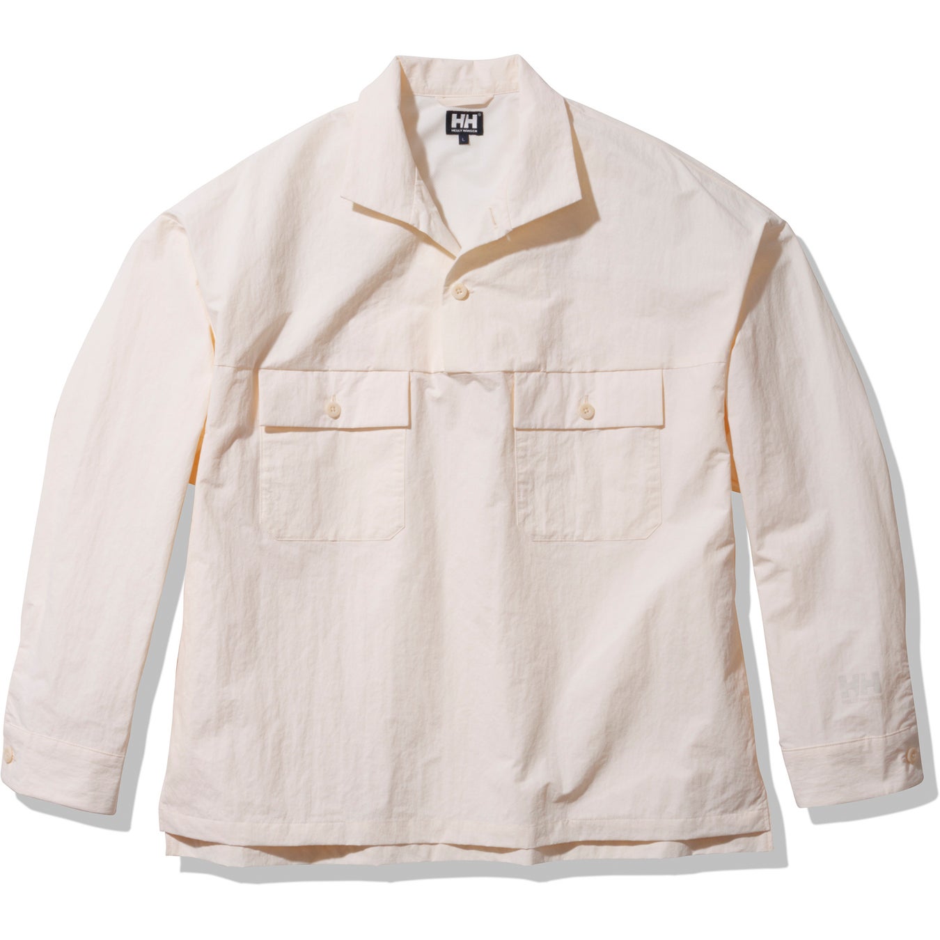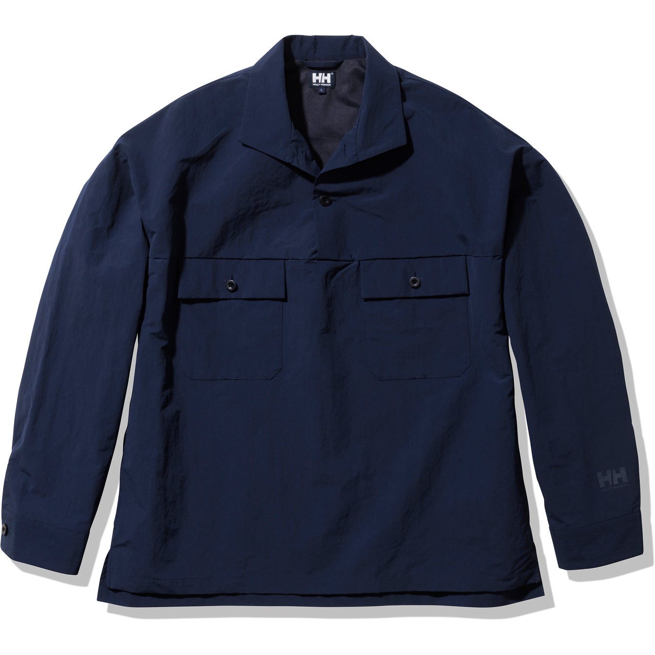 ヘリーハンセンらしいマリンテイストを取り入れた、アウトドアからタウンユースまで活躍するライトノウティクプルオーバーシャツ。環境への負荷に配慮してリサイクルナイロンとオーガニックコットンを混紡した生地で、天然繊維のナチュラルな風合いと、生地強度などの機能性を両立した製品です。総裏メッシュ仕様で肌離れがよく、快適な着心地が実現。はっ水加工を施しているため、多少の雨にも対応した仕様になっています。左胸ポケットにはサングラススリットを配し、マリンウエアの機能的なディテールを採用。