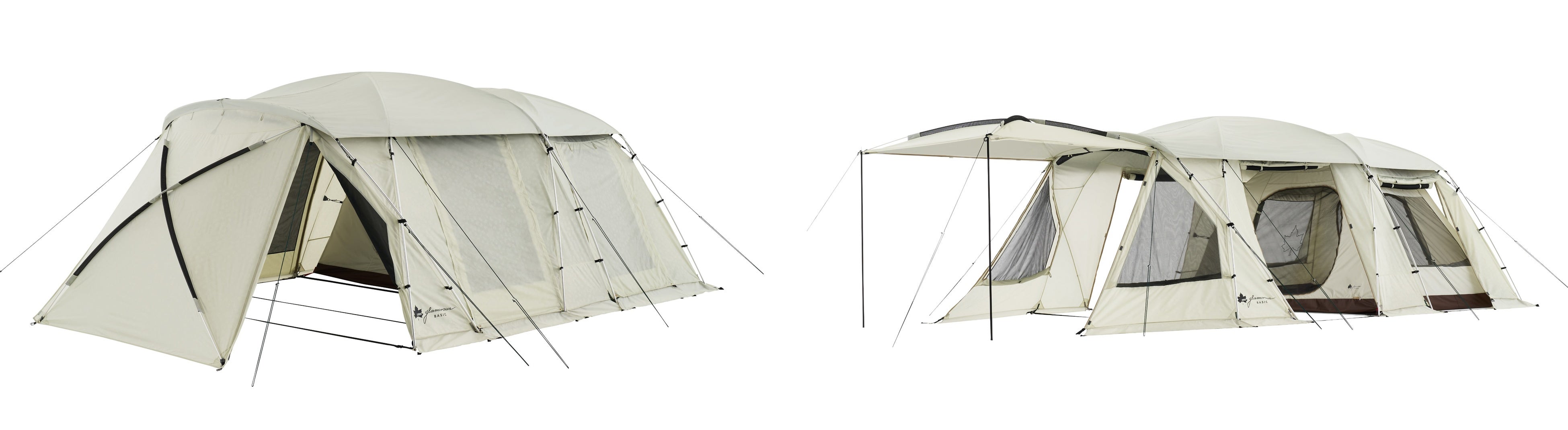 LOGOS史上最高の質感とデザイン性にこだわった「LOGOS GLAMBASIC」から、家族6人が横並びで寝られるほど広々とした空間を作り出すWXLサイズのテントが登場。LOGOS独自の優れた機能を多数搭載しており、プレミアムな居住性を実現。