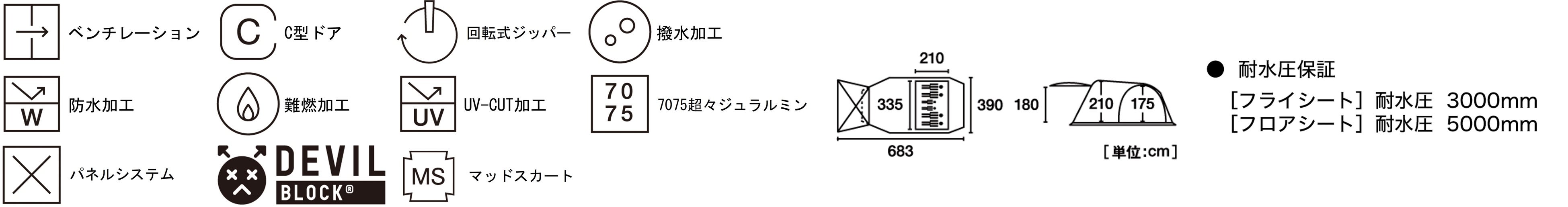 耐水圧 :[トップシート]3000mm[フライシート]3000mm[フロアシート]5000mm
