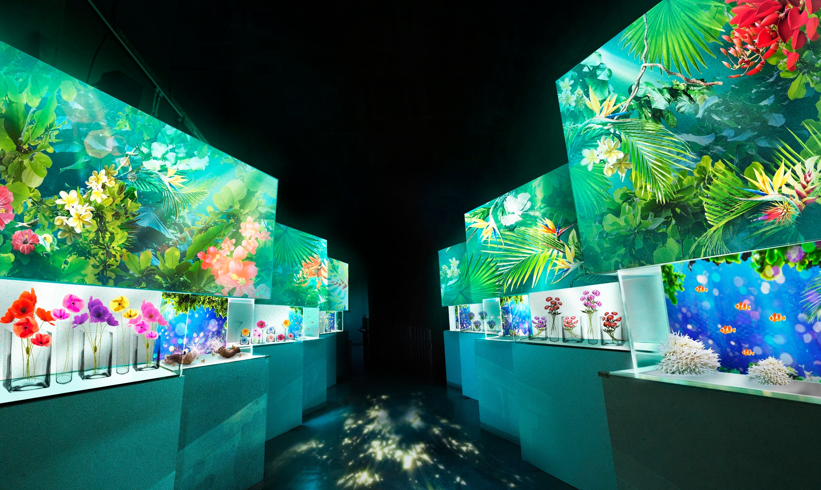 2015年冬よりマクセル アクアパーク品川とネイキッドは「音・光・映像と生きものの融合」という施設コンセプトの体現を軸に、シーズンごとに様々なコラボ企画イベントを実施してきました。このたび開催する「NAKED FLOWER AQUARIUM -Bring You Happiness-」では、新緑と光に包まれた海の世界の“絶景”を館内各所に創出します。