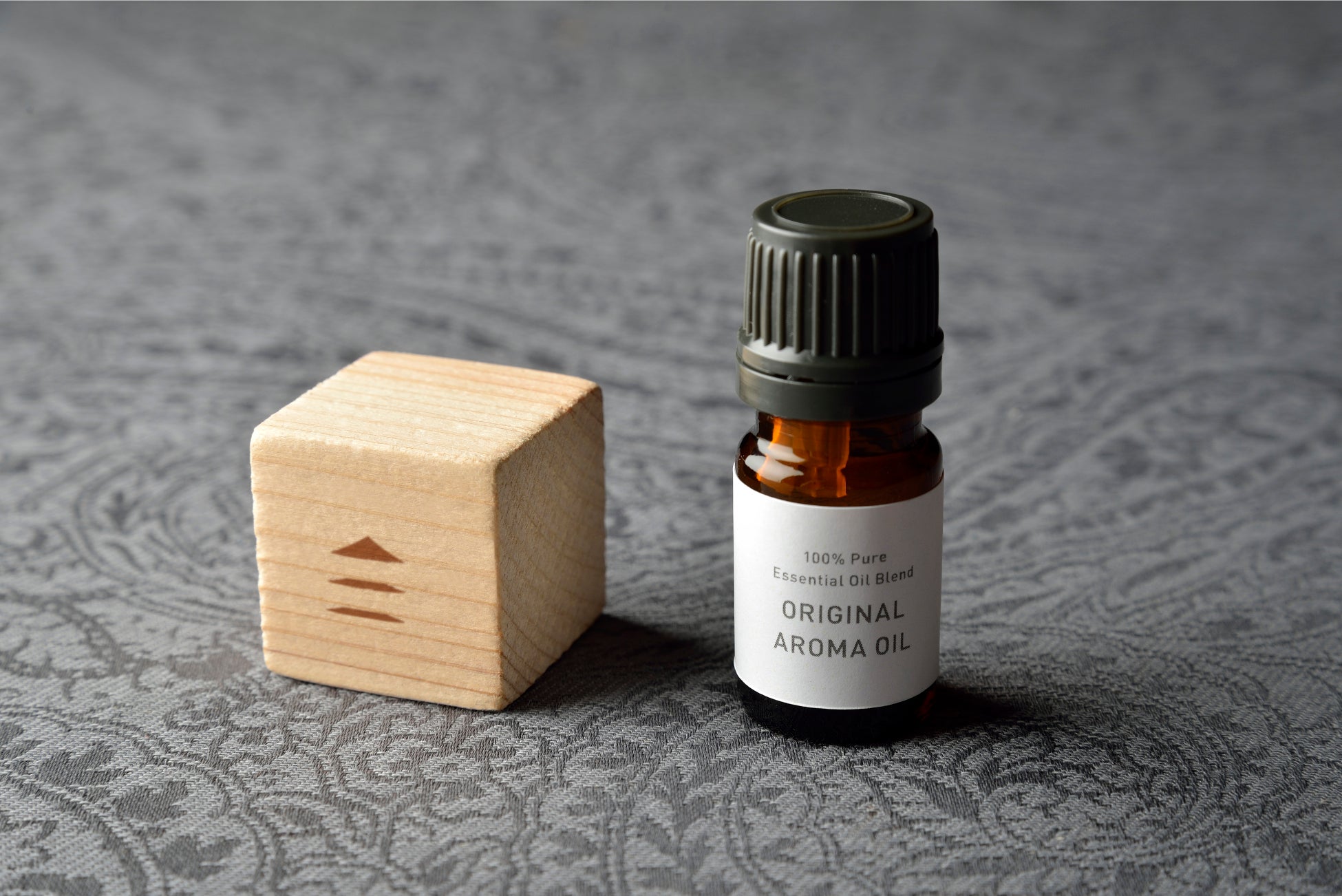 (アロマオイル 5ml&ヒノキのキューブ型ディフューザー)