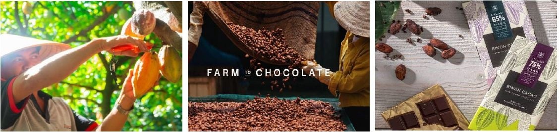 ・カカオ生産からチョコレートになるまでを一貫して行う農園(「Farm to Bar(ファームトゥバー)」をベトナムでおこなっているBINON CACAO PARKからおいしいチョコレートになるまでの工程のご案内やカカオを使った商品をご紹介します。