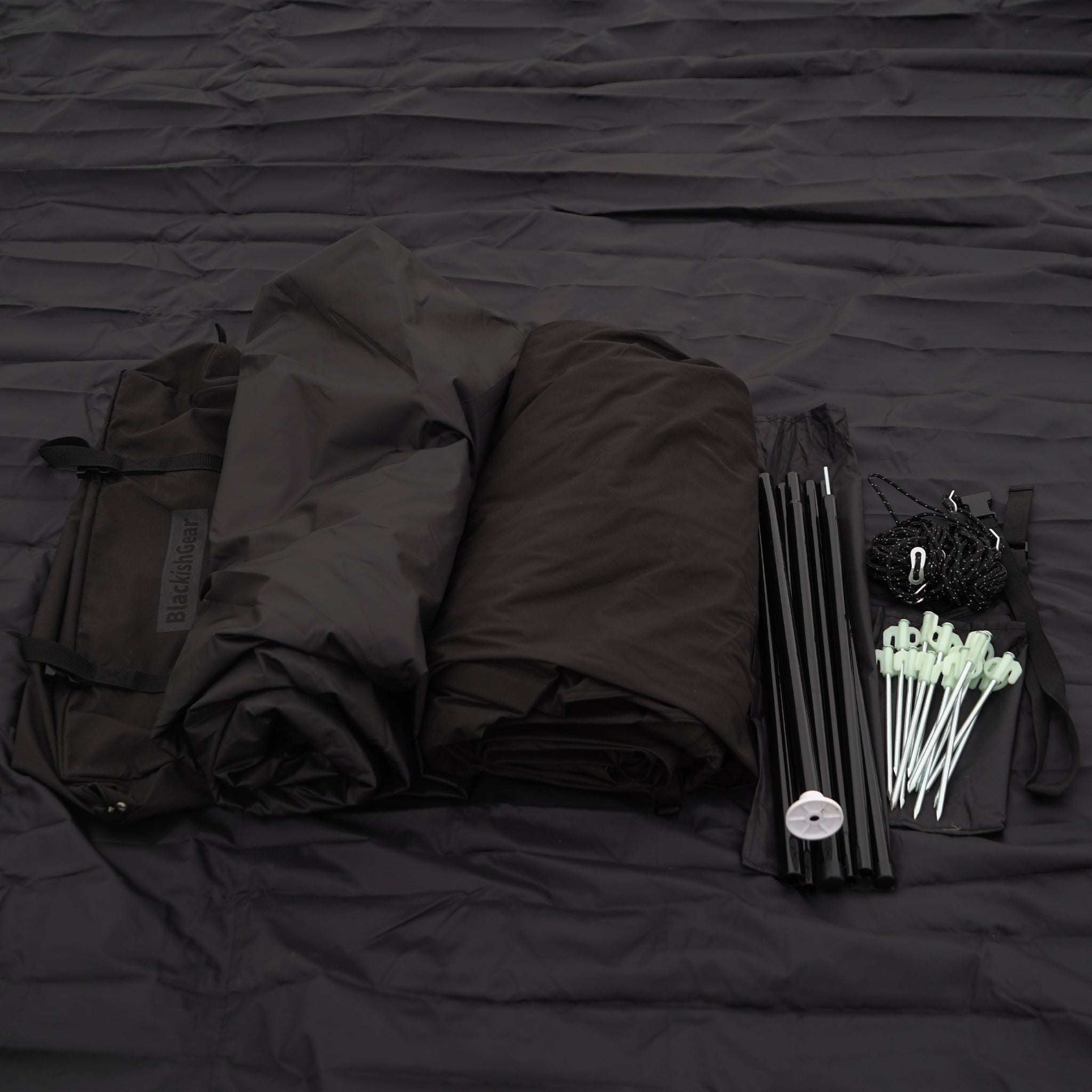 ブラックソロキャンプに最適なTC素材の黒いワンポールテント。