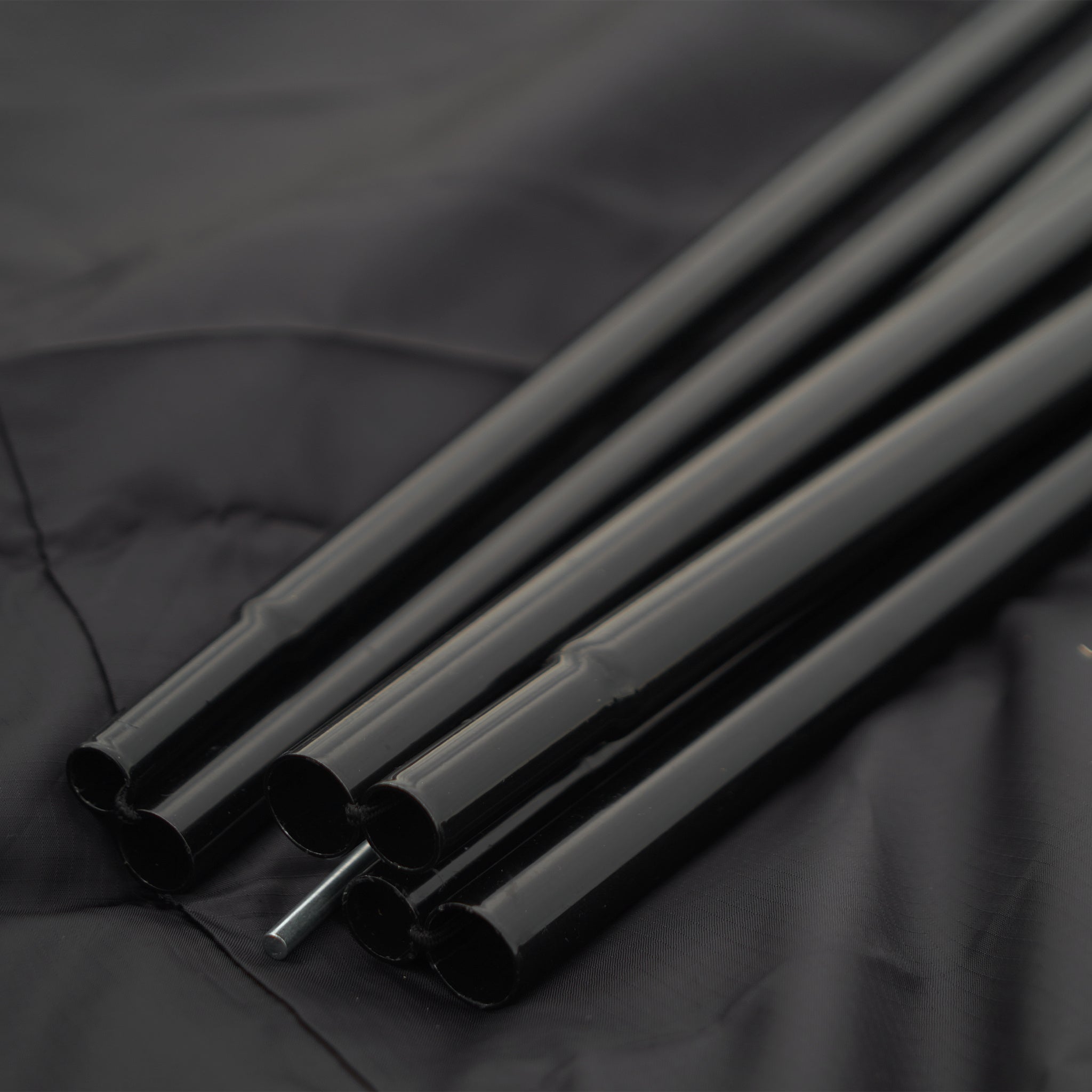 ポールはスチール製のメインポールとサブポールが1本ずつ付属。収納バッグはコンプレッション機能付きでよりコンパクトに持ち運べます。