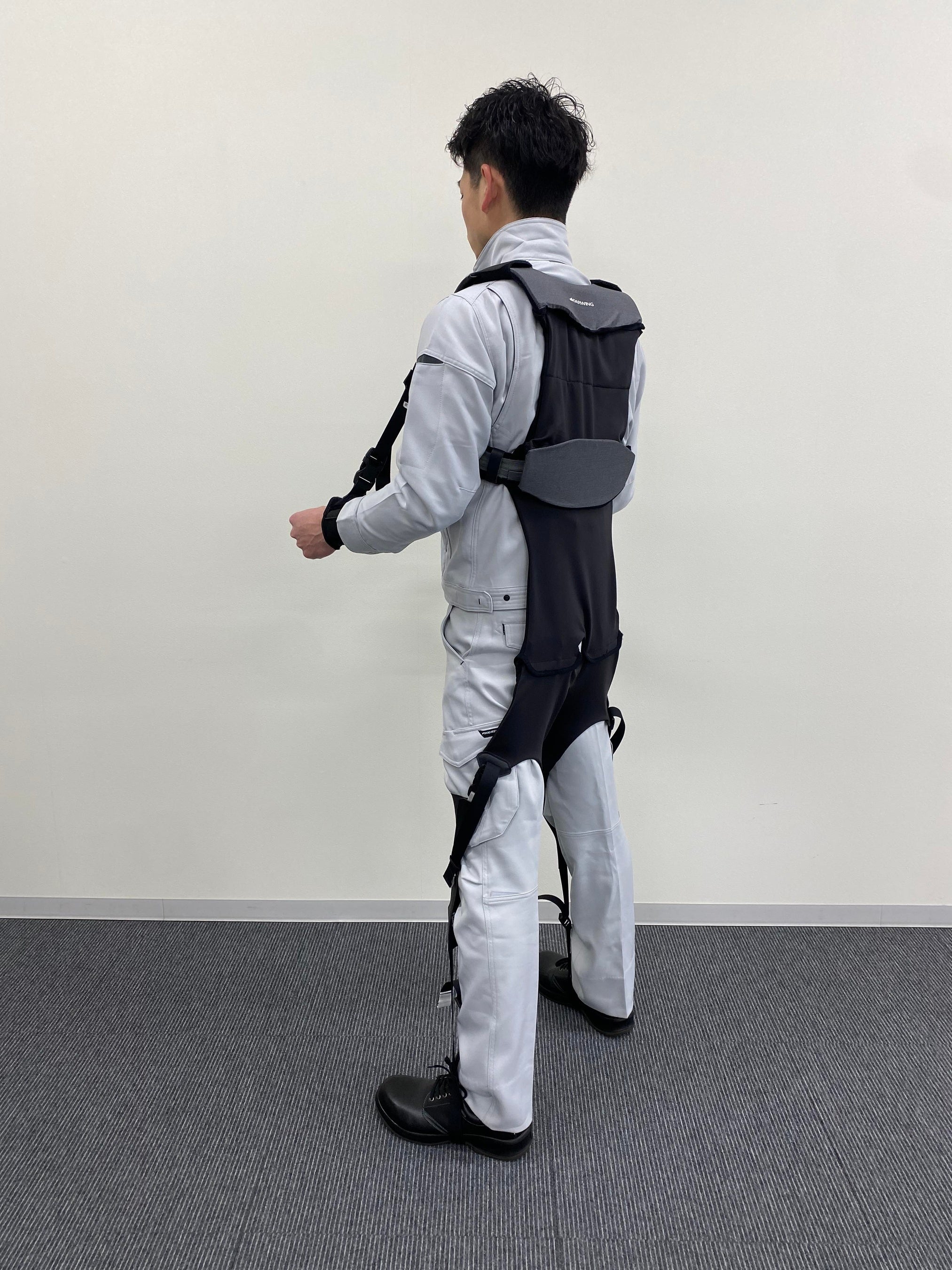 中腰姿勢のや持ち上げ作業からくる腰への負担を軽減するアシストスーツです。