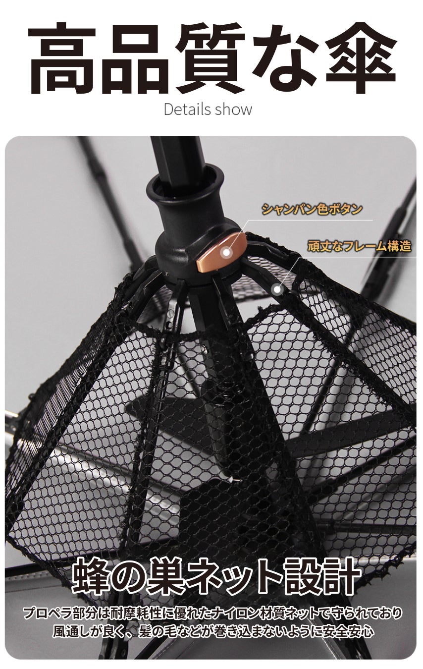 傘の中に溜まった空気を強力にかき混ぜるため、夏のような日差しが強い日でも、小型ファンを動かせば涼しく過ごすことができます!!