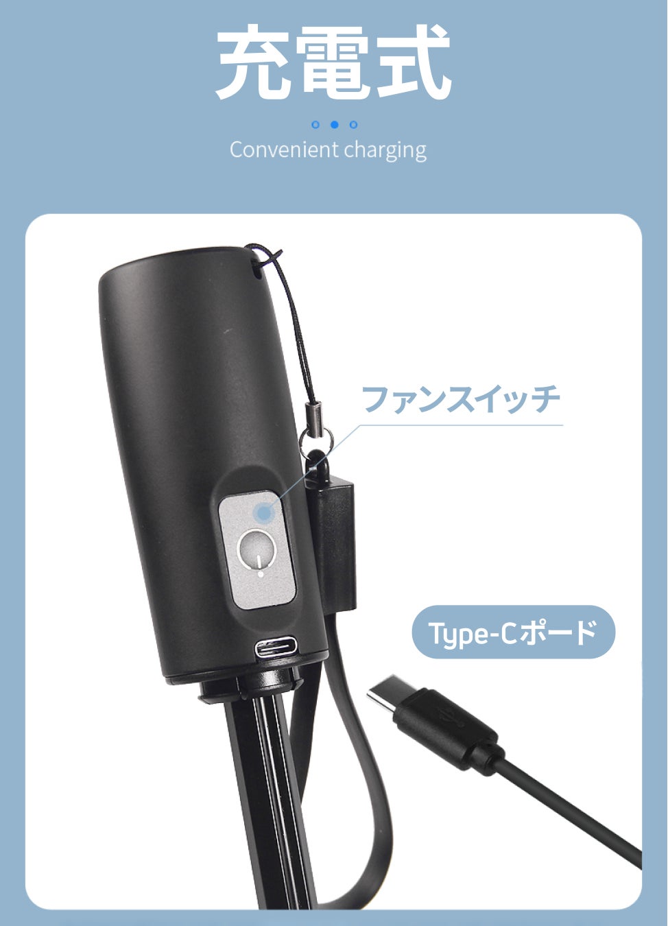 本体の手持ち部分にType‐Cポートが内蔵されているので直接ポートに接続することでスムーズに充電することが可能。