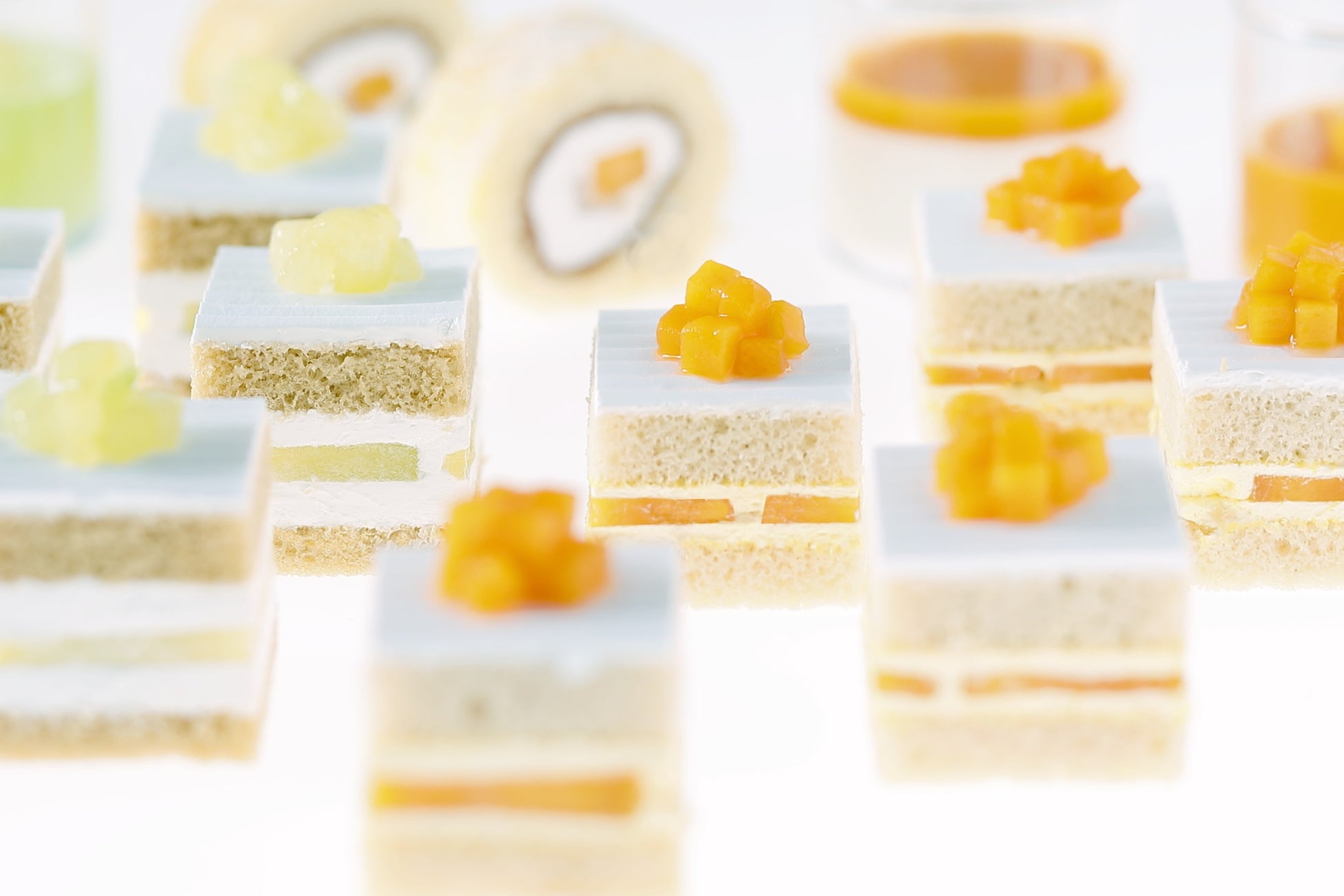 そして桜の季節ももう間もなく終わりを告げ、来る初夏のシーズンにはまさにこれから旬を迎える“マンゴーとメロン”をふんだんに使用した、新シリーズがスタートいたします。定番のショートケーキはもちろん、見た目もさわやかなグラススイーツやロールケーキなどそのラインアップは全部で18種類。1つでも多く召し上がっていただけるよう、食べやすいミニサイズでご用意いたします。