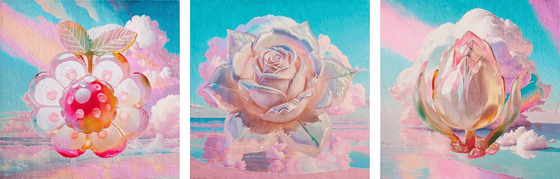 一方、「FLOWERS」展では、JAZ HAROLD氏が浄化、カタルシス、成長というテーマを体現し、子供のような純真さに訴えかける作品を展示します。柔らかく、ふわふわの生地、咲き誇る花、パステルカラーに満ちた作品は、女性的で官能的で無垢でもあり、性に関して恥や罪という価値観を持つ社会に対して、優しく、時にはユーモラスな視点を持つことで反応しています。