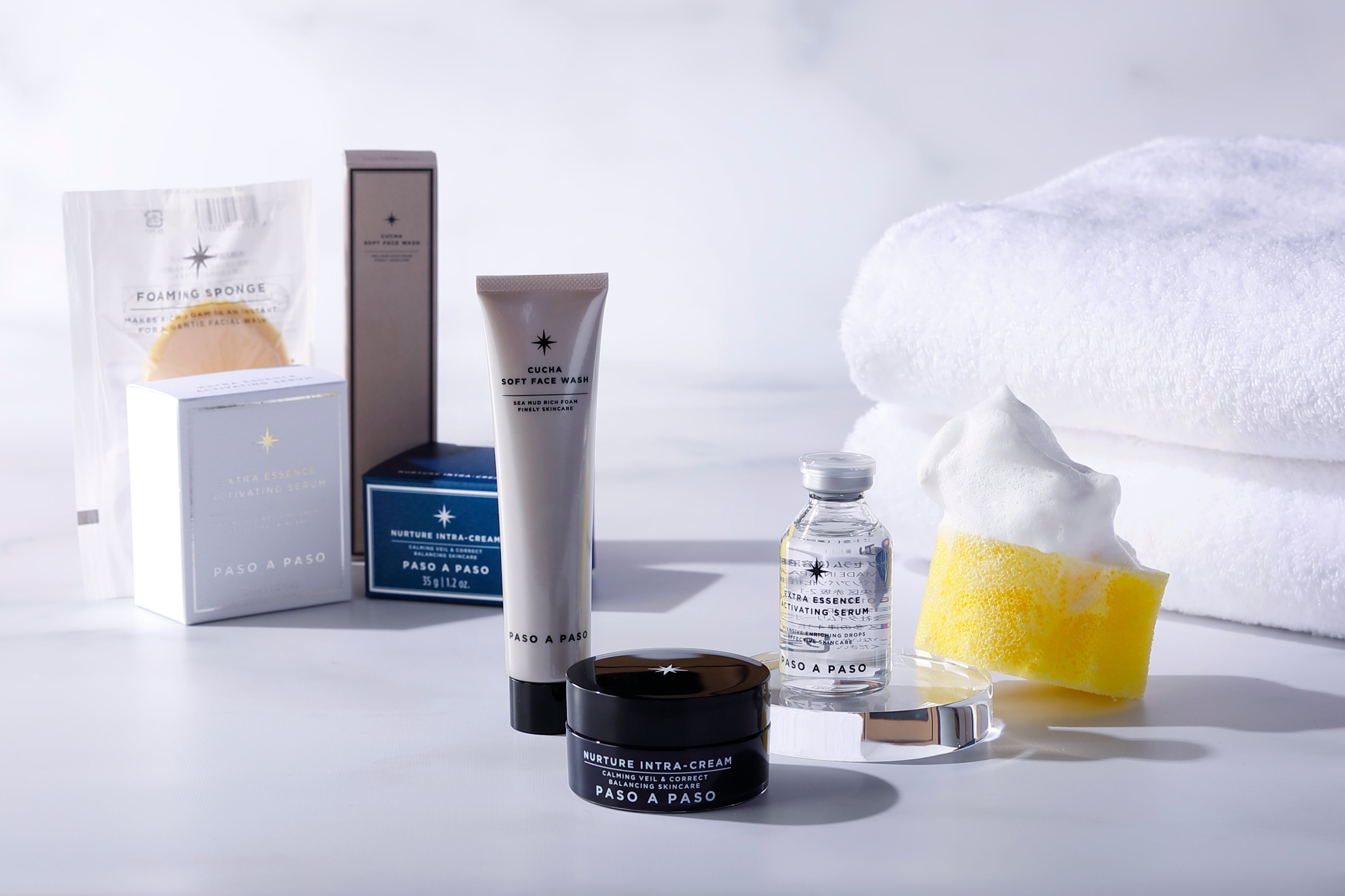 コロナ禍にも関わらず大変好評で、多くの利用をいただいているアメニティ付プラン『Ladies Plus.』は、ホテルスタッフが毎年吟味を重ねアメニティの選出をしています。今年は“脱マスク”の年になることから、自信を持ってマスクを外せる“素肌力を育てる”をテーマに、自然素材と美容テクノロジーを掛け合わせ、肌本来の美しさを引き出すスキンケアを目指すブランド「PASO A PASO」のオリジナルスキンケアセットをご用意いたしました。