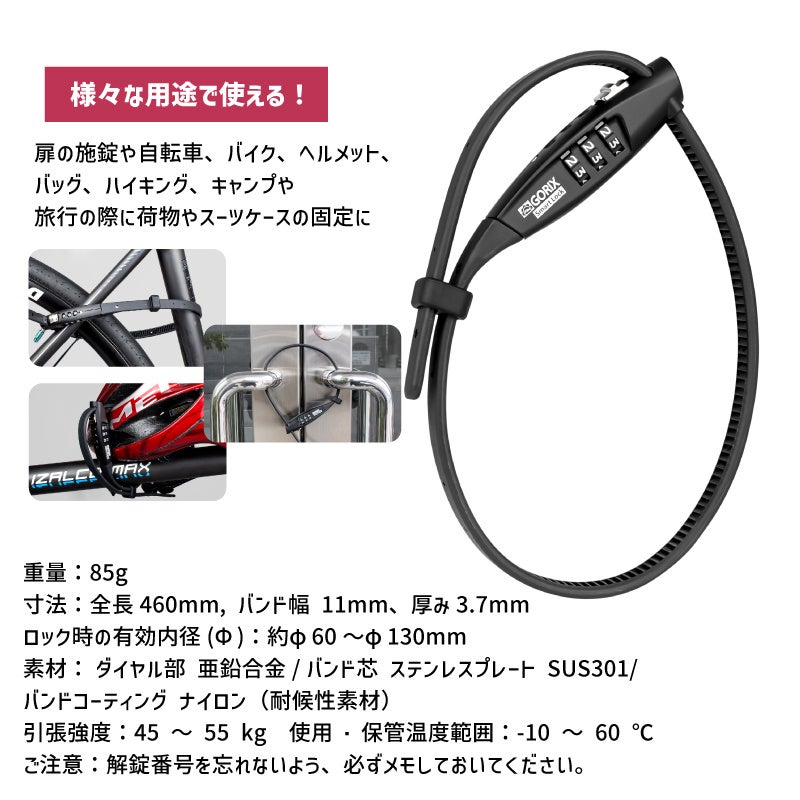 商品名:GORIX 結束バンド式ダイヤルロック(GR-COMBO)