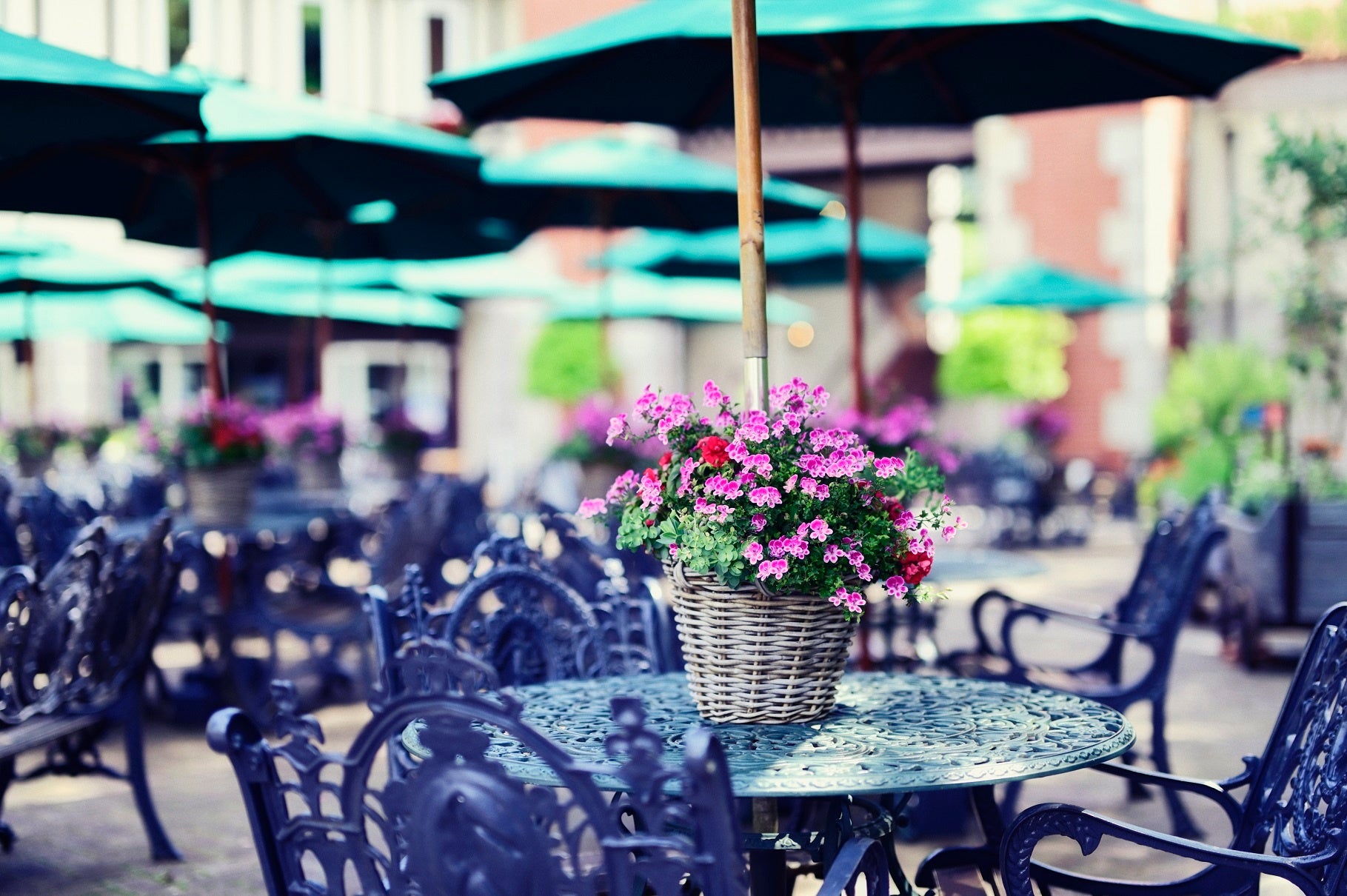 レストランやカフェ、テラスで⾷事やスイーツを、