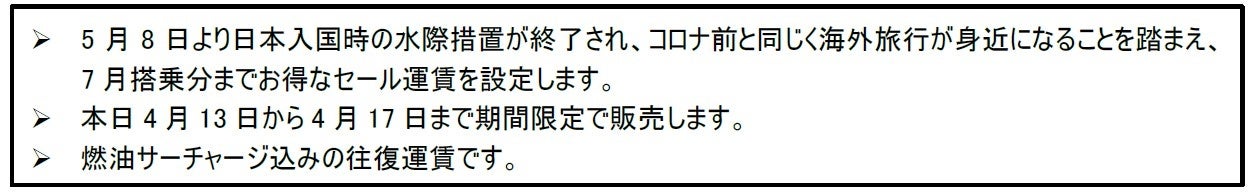 ※セール運賃に別途、航空保険特別料金や旅客施設使用料などがかかります。