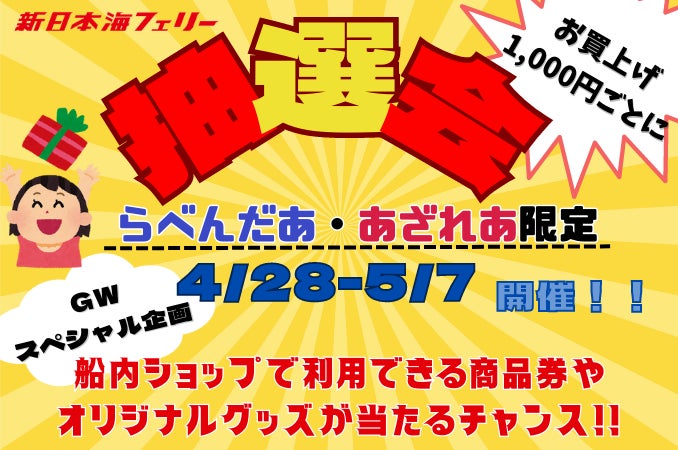 春の行楽シーズンに合わせて、船内ショップにてお買い上げ1,000円ごとに豪華商品が当たる?!抽選会を開催します。