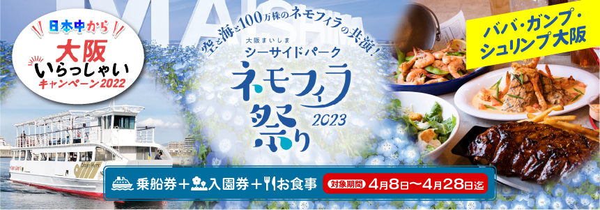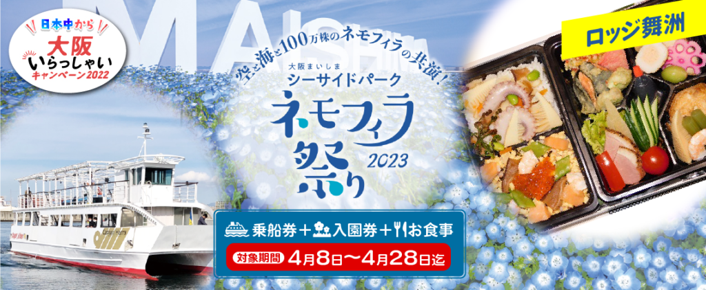 《舞洲ネモフィラ祭り入場券付》往復舞洲シャトルクルーズプランhttps://4trip.jp/dome/osaka_maishima