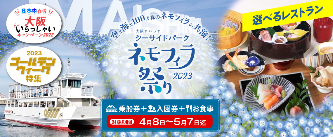 株式会社フォーティーズ(本社:大阪市鶴見区、代表取締役 岡武史)は新規レストラン追加【4/28出発限定】大阪出発《全国旅行支援》《舞洲ネモフィラ祭り入場券付》往復舞洲シャトルクルーズ+「がんこユニバーサルシティウォーク店」選べるランチ付き日帰りプランのオンライン受付販売しました。