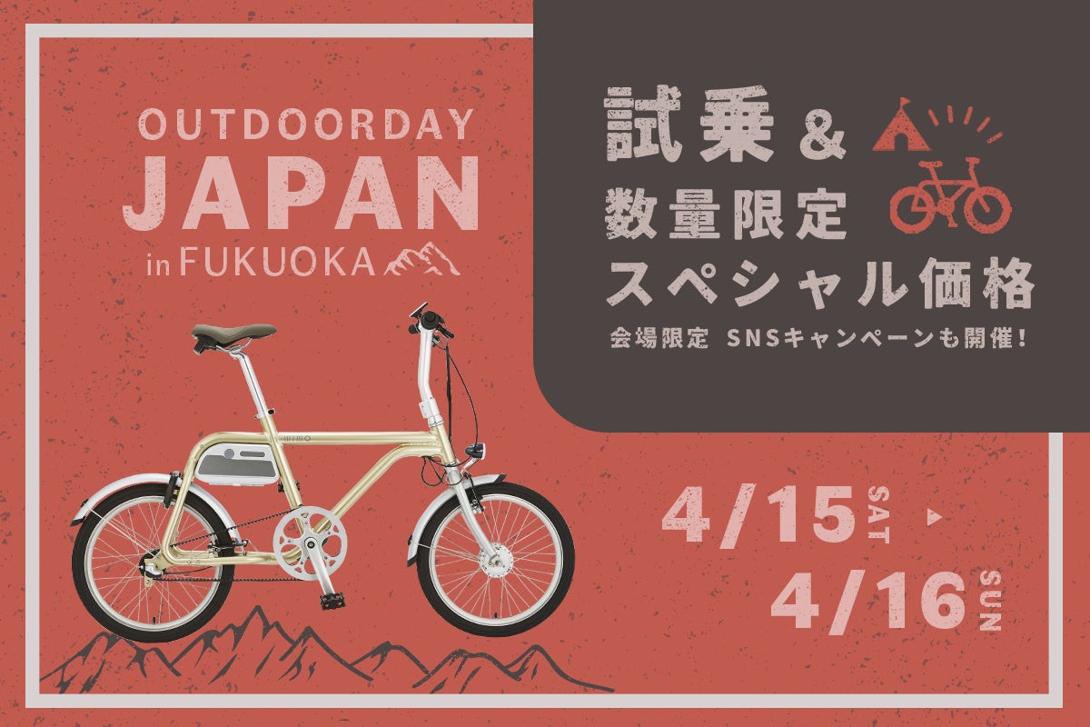 この度、唯一の自転車ブランドとして福岡アウトドアデイジャパン2023へ出展し、ご来場者に無償で試乗していただくだけでなく、特別企画も実施する予定です。