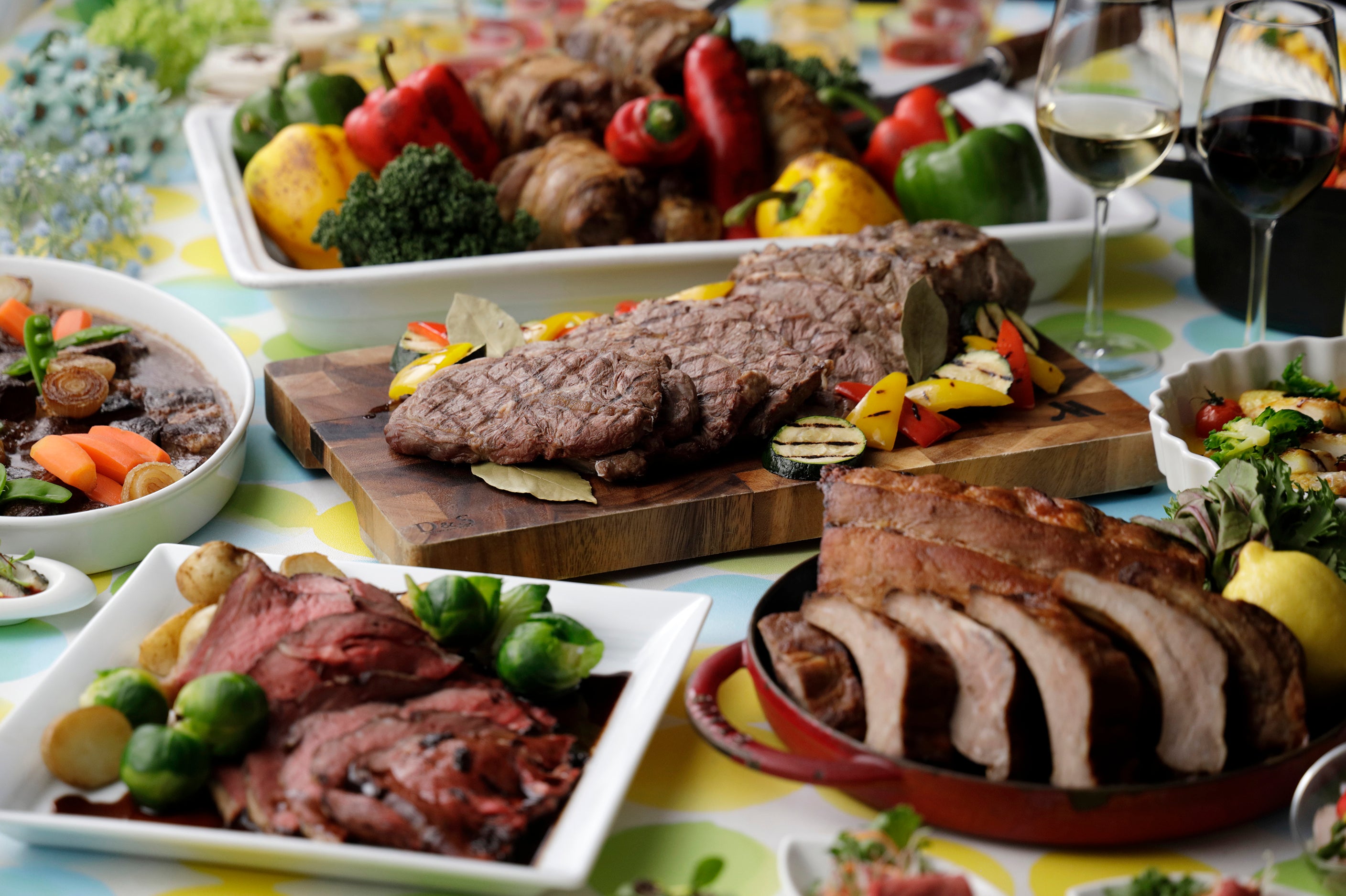 肉料理をお好きなだけご堪能いただける“Meat Fes”が登場です。「USビーフのグリル」を筆頭に、「ポークバックリブのBBQロースト」や「鶏肉のロースト 白ワインソース」など、様々な肉料理をご用意します。ディナーでは、人気の「ローストビーフ」と「シュラスコ」も登場。他にも煮込み料理やオーブン焼きなどバリエーション豊富な調理法でブッフェならではの美味しさをお届けします。お子様から大人までお楽しみいただけます。