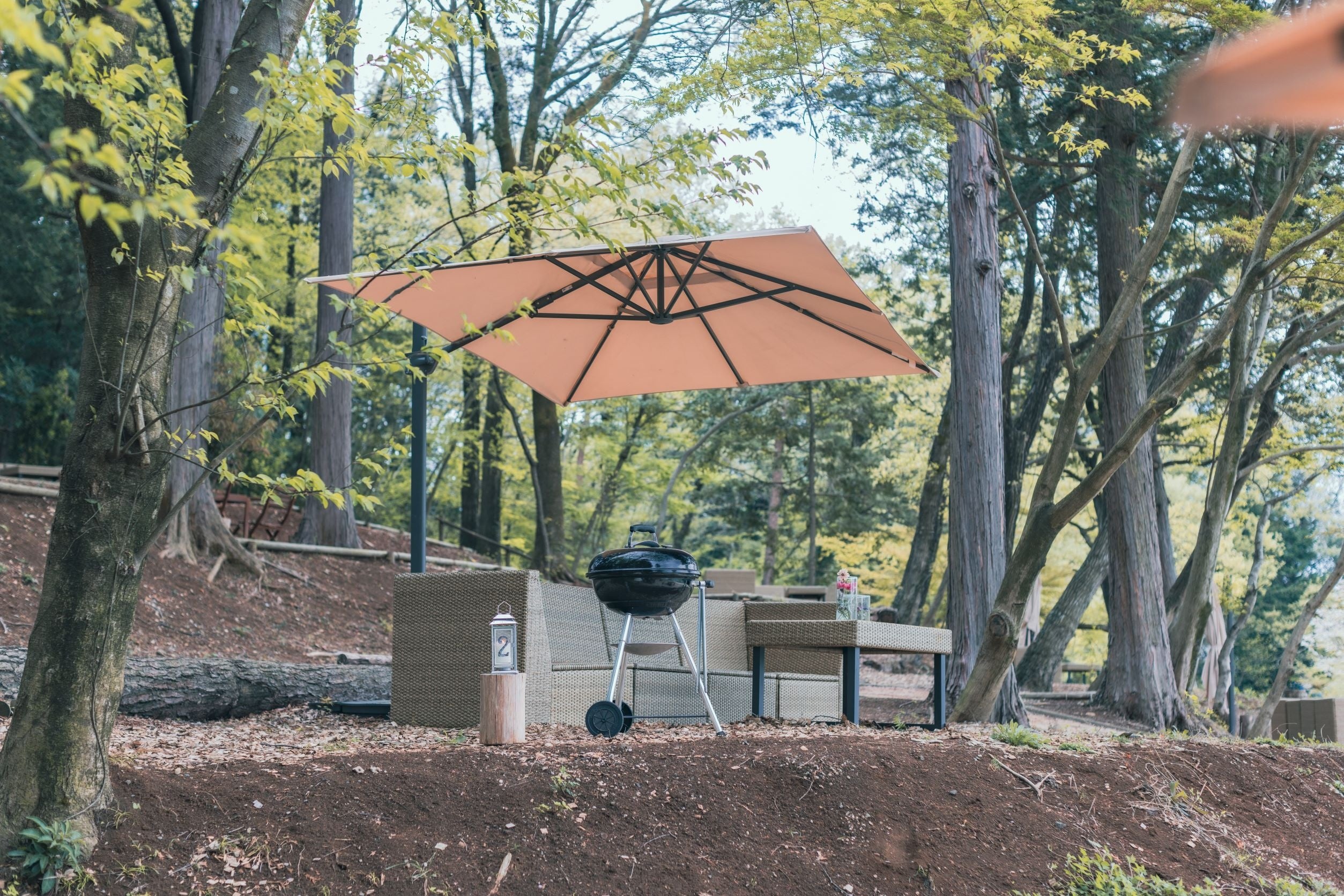 BBQ が楽しめる全13サイトは、食後にテントでのんびりお昼寝ができる「テントサイト」、ソファー席でゆったりできる「ヒルサイト」、テーブルを囲みながらワイワイ楽しめる「スタンダードサイト」、リードなしで愛犬とのプライベート空間を満喫できる「ドッグフリーサイト」の 4 種類から。