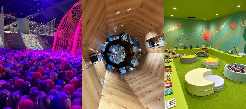 4/29(土)グランドオープン。10万個を超えるウレタン製ボールを使った巨大ボールプールや最新のVR技術を駆使した360°3Dプロジェクターなどで夢のようなバーチャル体験をご提供します。