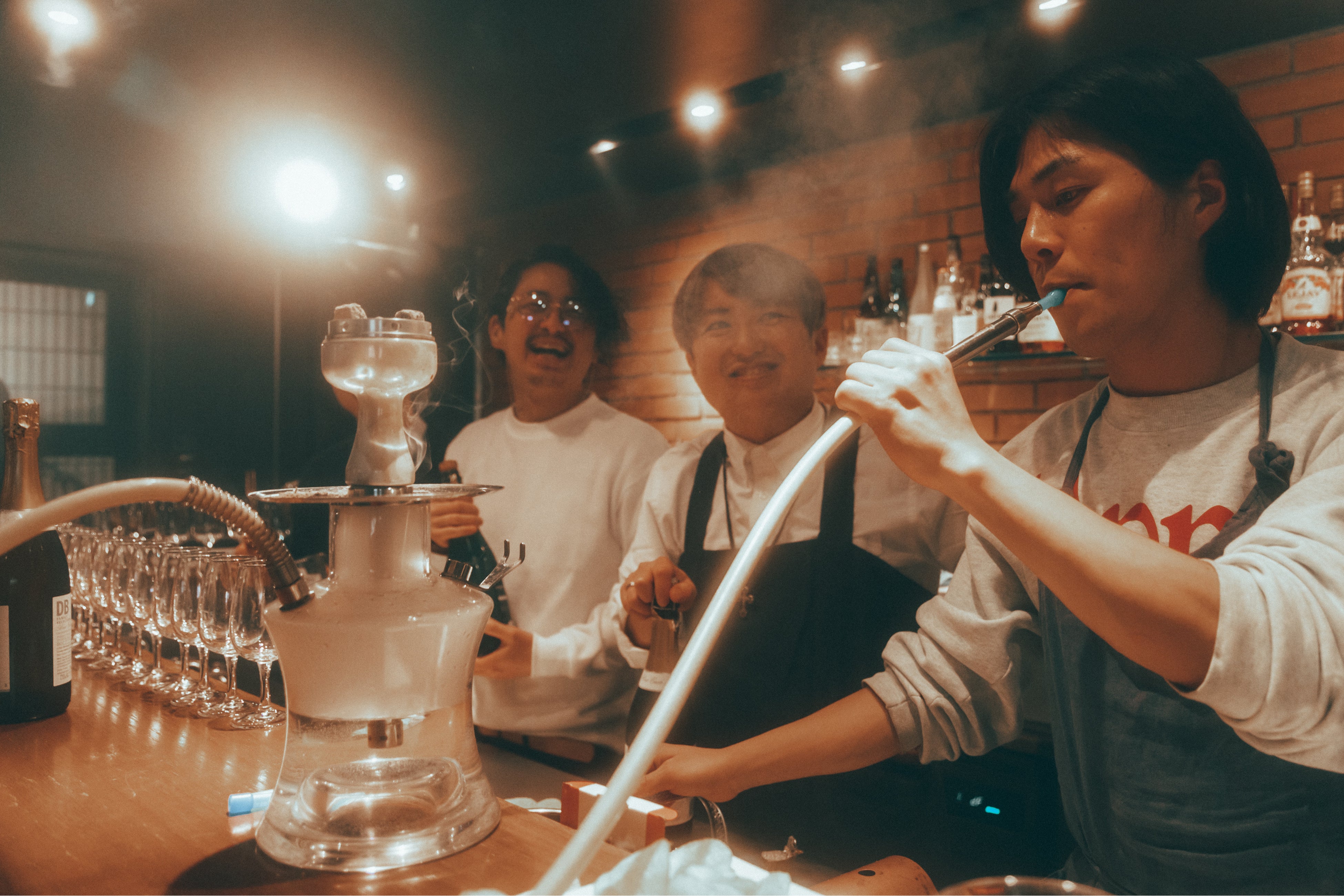 ゲスト同士がシーシャを通じて「同じ時間を共有する体験」を共有し、BARに集う人たちがつながりコミュニケーションを楽しんでいただくことが目的の空間です。
