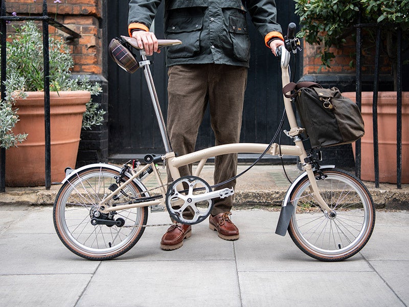 今回のイベントではBarbour(バブアー) × BROMPTON(ブロンプトン)のコラボレーションアイテムを展示。特別仕様のCラインExplore(エクスプロアー)バイクと、そのバイクにぴったりフィットするバブアー製バッグをご用意いたします。