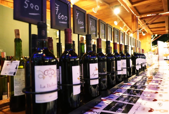 会場内にあるワイン販売ブースの一部でオ・ボルドー・フクオカが厳選したボルドーワインを販売。