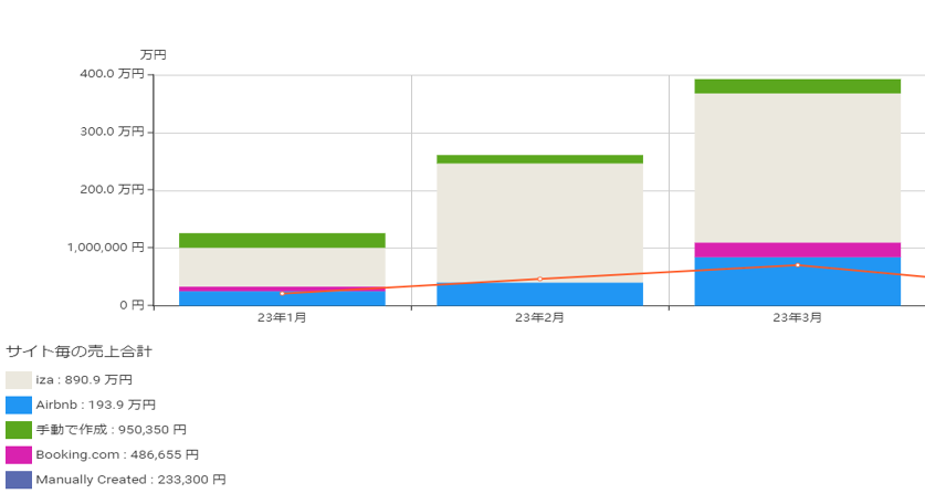 通常宿泊施設の集客はAirbnbやBooking.comなどのOTA(Online Trabvel Agency)という集客サイトを利用するが、当施設の集客ではOTAでの集客率はAirhbnbが20%、Booking.comが6%程度となっており、60%以上が直接集客による予約となっている。