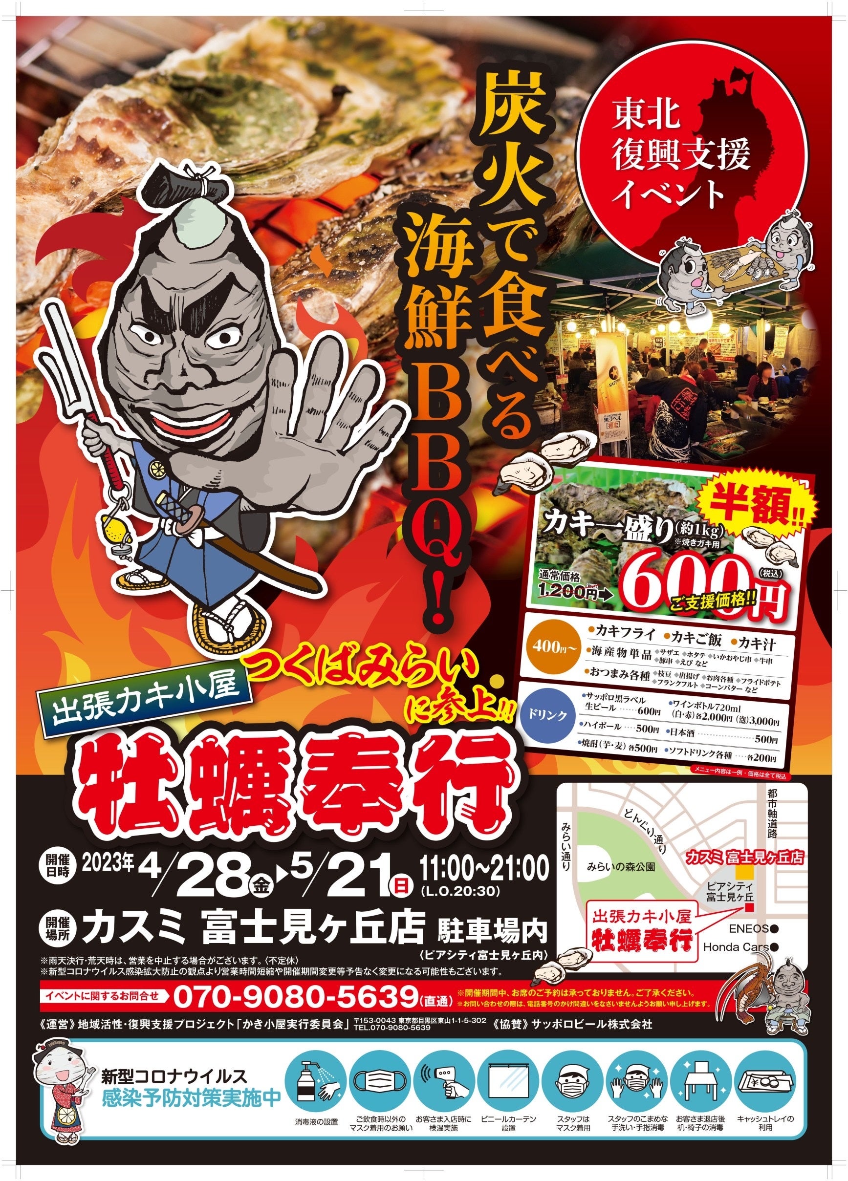 「出張カキ小屋 牡蠣奉行がカスミ富士見ヶ丘店駐車場内に期間限定オープン。期間は4月28日〜5月21日まで。