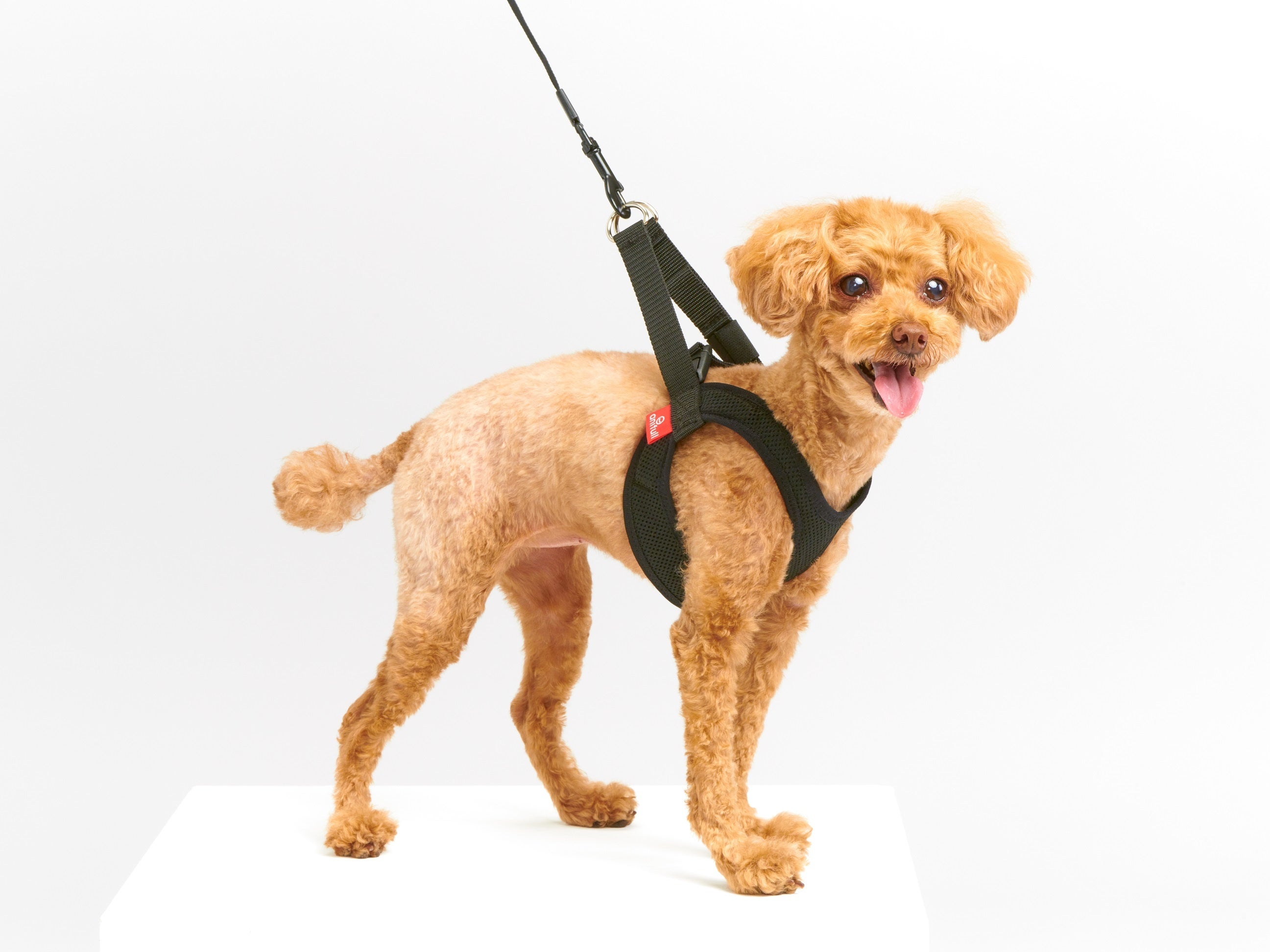 愛犬の気管にあたる部分が圧迫されないよう、立体Y字形状のハーネスになっています。また、首の後ろも締め付けない構造となっており、首や前脚の動作を妨げません。