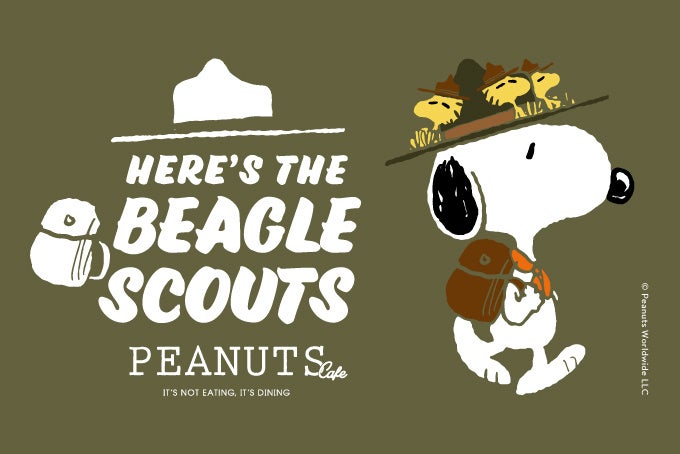 第1弾はスヌーピーとウッドストックの仲間たちが勢ぞろい!“ビーグル・スカウト”をモチーフにしたメニューやグッズが登場!