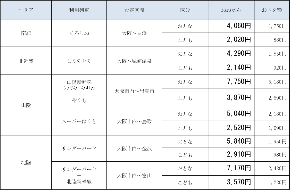 ※おトク額は、所定額(通常期・普通車指定席利用の場合)と、おねだんの差額です。