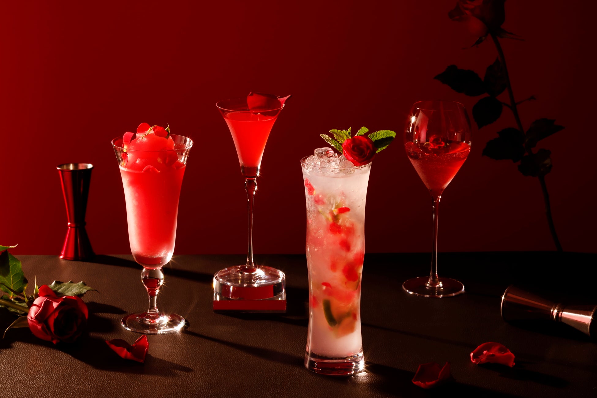 ホテルのメインバー「バーカプリ」では、薔薇の開花シーズンを祝して、バーテンダーが「深紅の薔薇」や「薔薇の庭園」から着想を得て作り上げたロマンチックなカクテルをご提供いたします。