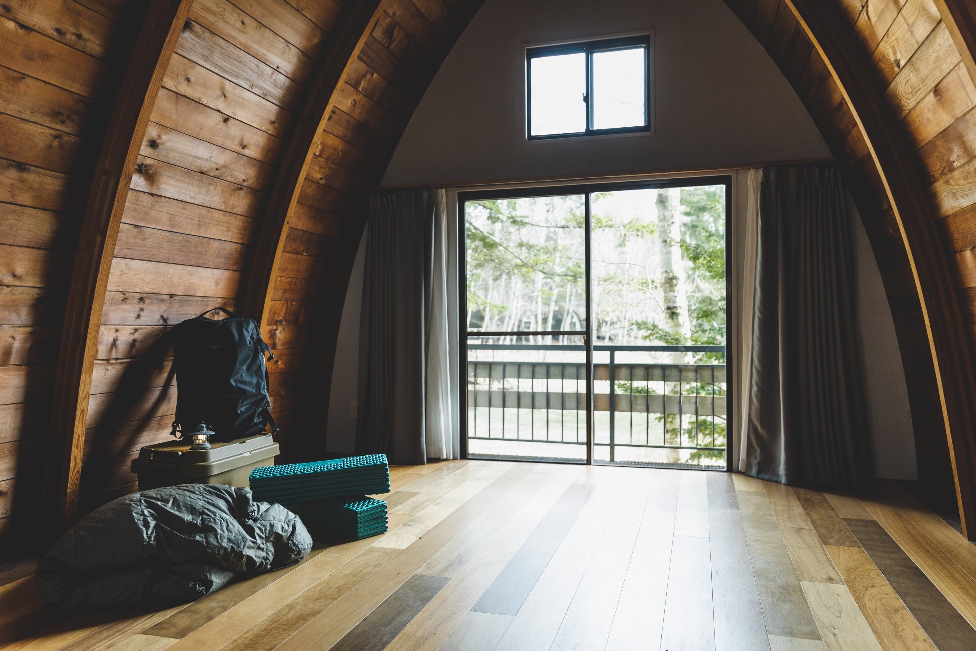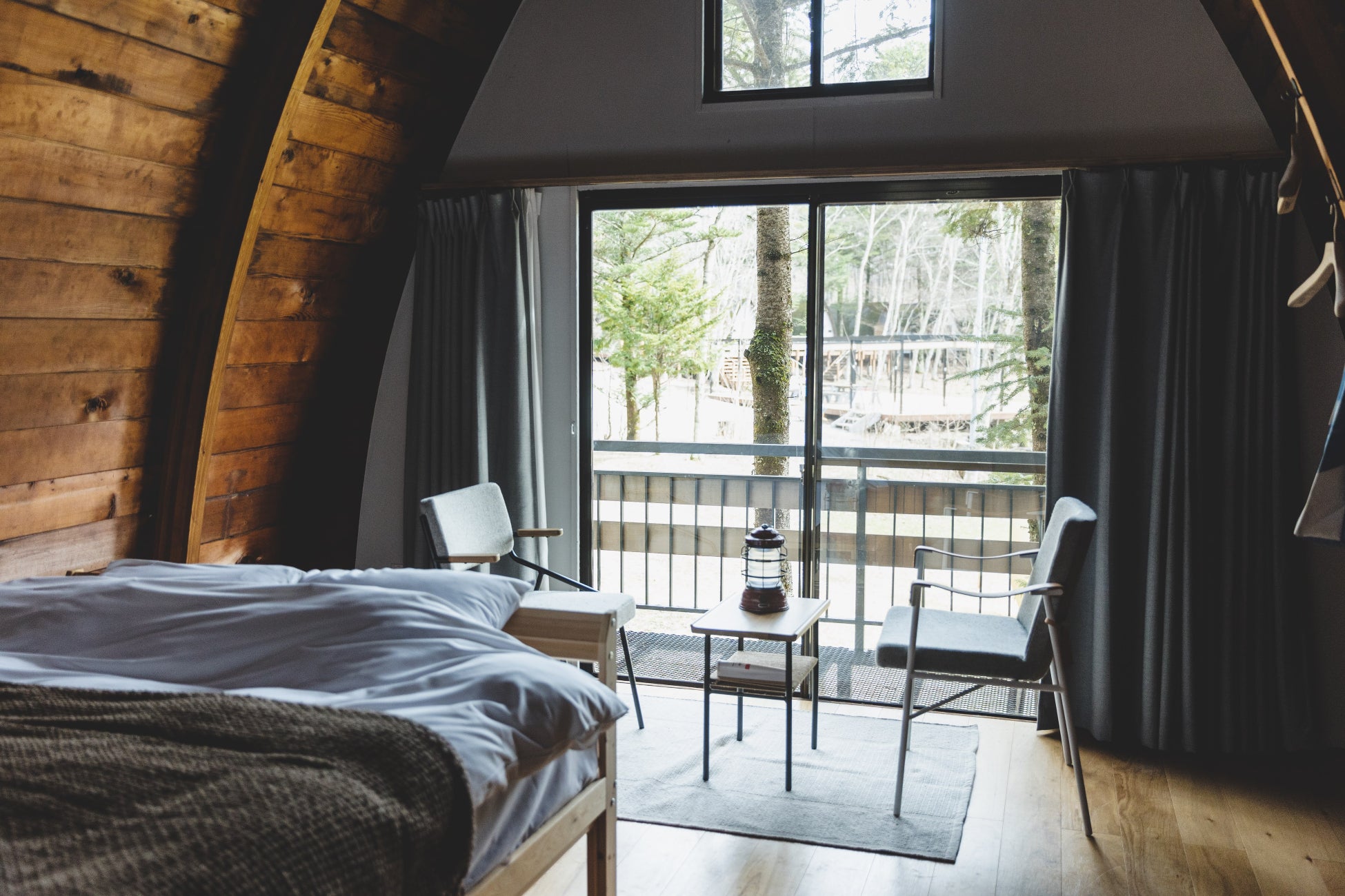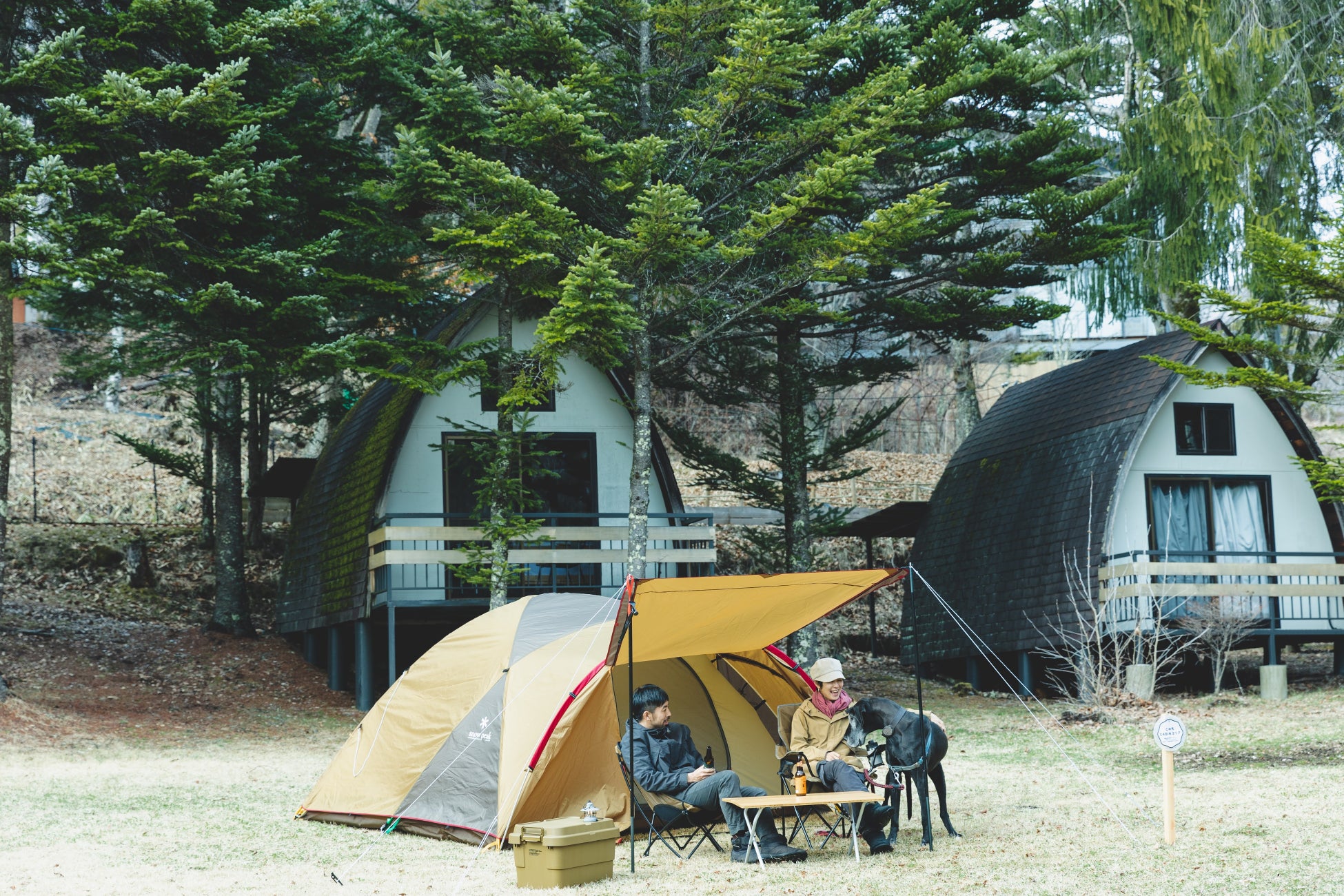 キャンプエリアに並ぶ一棟貸しのキャビンを拠点にしたアウトドアスタイルの滞在で、4室限定でペットとの時間を過ごしていただけます。