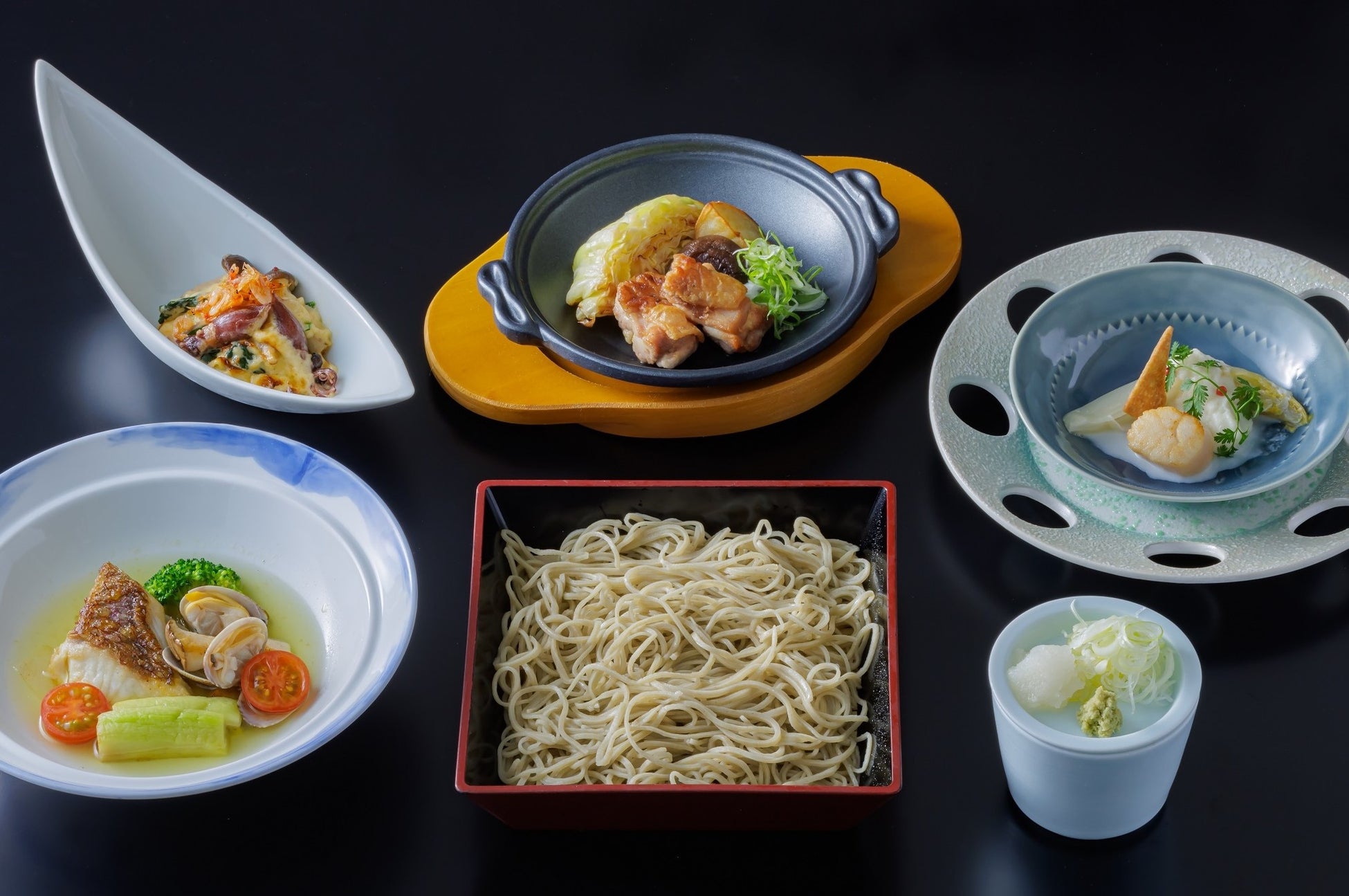 「大観苑」では北京ダックや、点心師による特製点心、ふかひれ入りのスープなどの王道メニューが愉しめるランチコースを、「麺処 NAKAJIMA」では職人が毎朝手打ちし一日数量限定でしかご提供できない、新鮮な手打ちそばと旬食材の天麩羅などの絶品和食コースをそれぞれお愉しみいただけます。