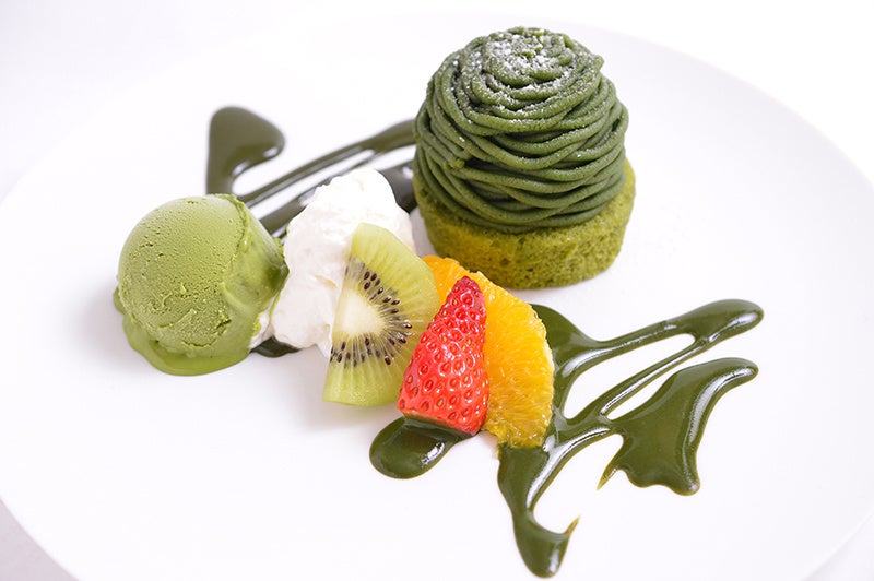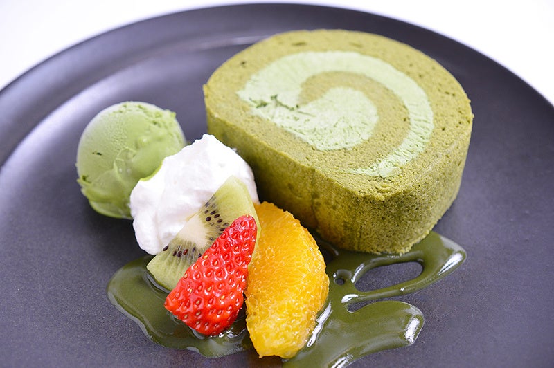 スイーツは、人気の顔パフェに加えて京都の宇治抹茶を使ったロールケーキ、モンブラン、チーズケーキの3種類が新登場。濃厚な抹茶の味をしっかりと感じ、抹茶好きの方にはたまらないスイーツです。