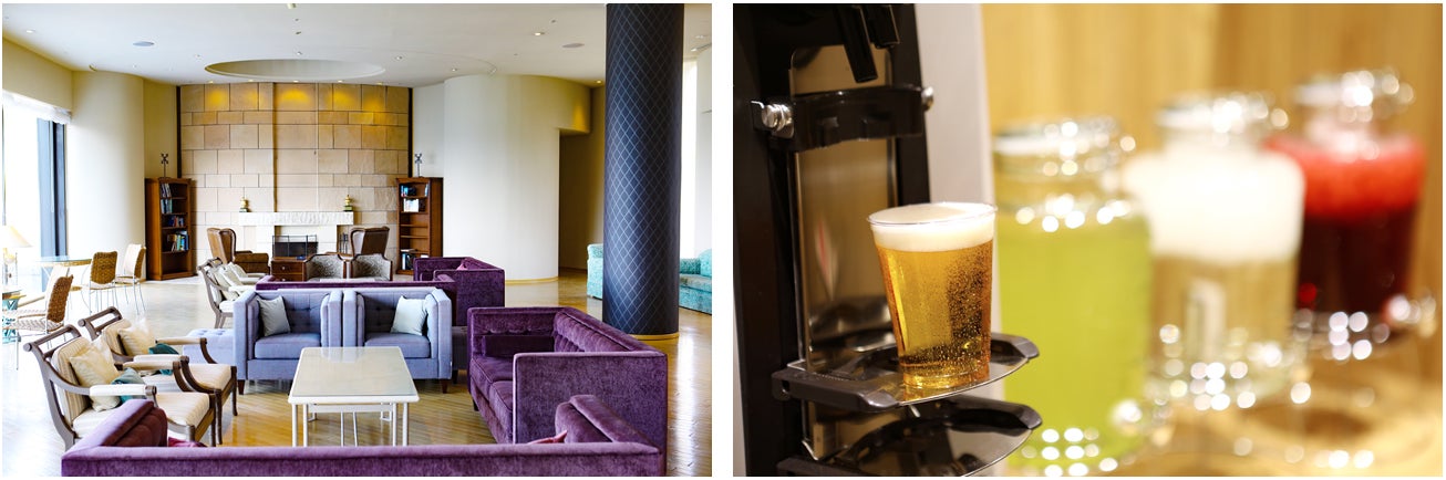 大浴場横には、湯上りに冷たい伊勢茶やアイスキャンディ、生ビールなどをお楽しみいただける「湯上りラウンジ」を設置しておりますが、TAOYA志摩だからこそのオーシャンビューを楽しみながら湯上りのひと時を過ごしたい、という声にお応えして、3階、ロビーラウンジにもアルコールをご用意いたしました。